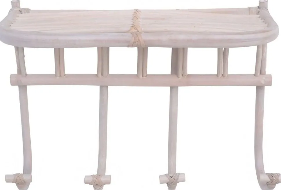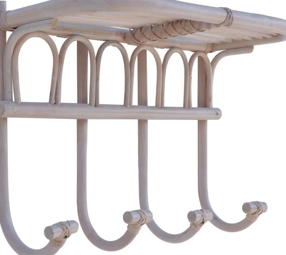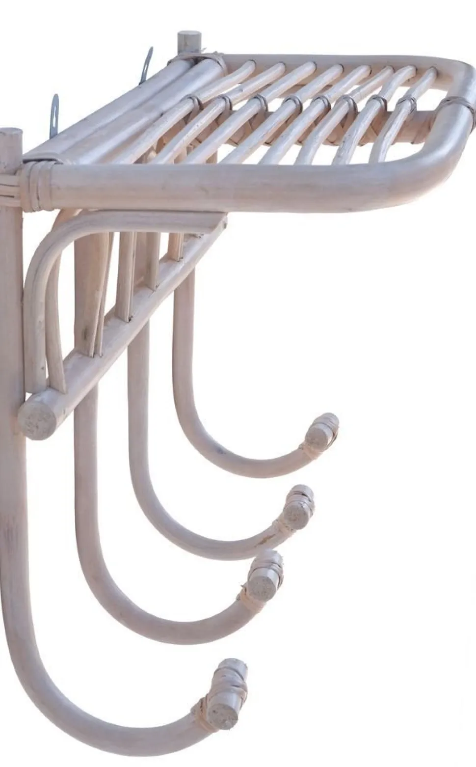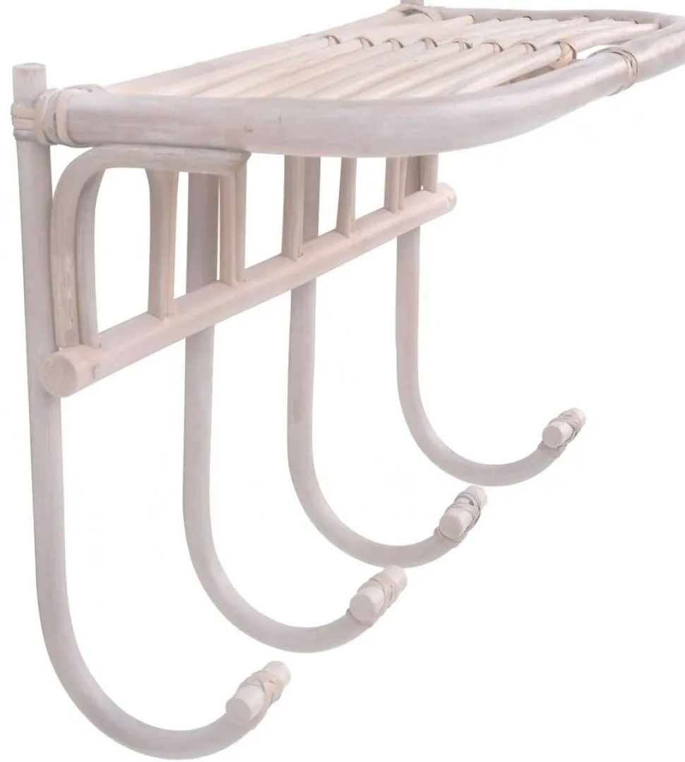 Modern och minimalistisk i slitstark och hållar whitewash färgad rotting. Hatthyllan har 4 krokar samt ett hyllplan.