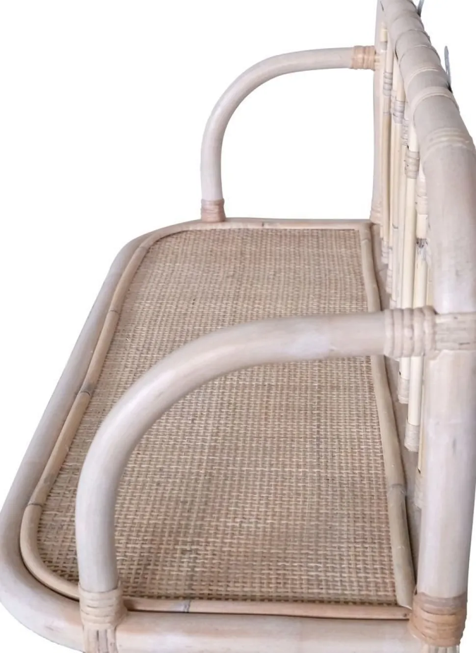 Vägghylla av naturmaterialet rotting, bunden för en stabil konstruktion. Denna är i whitewash men finns även som naturfärgad rotting.