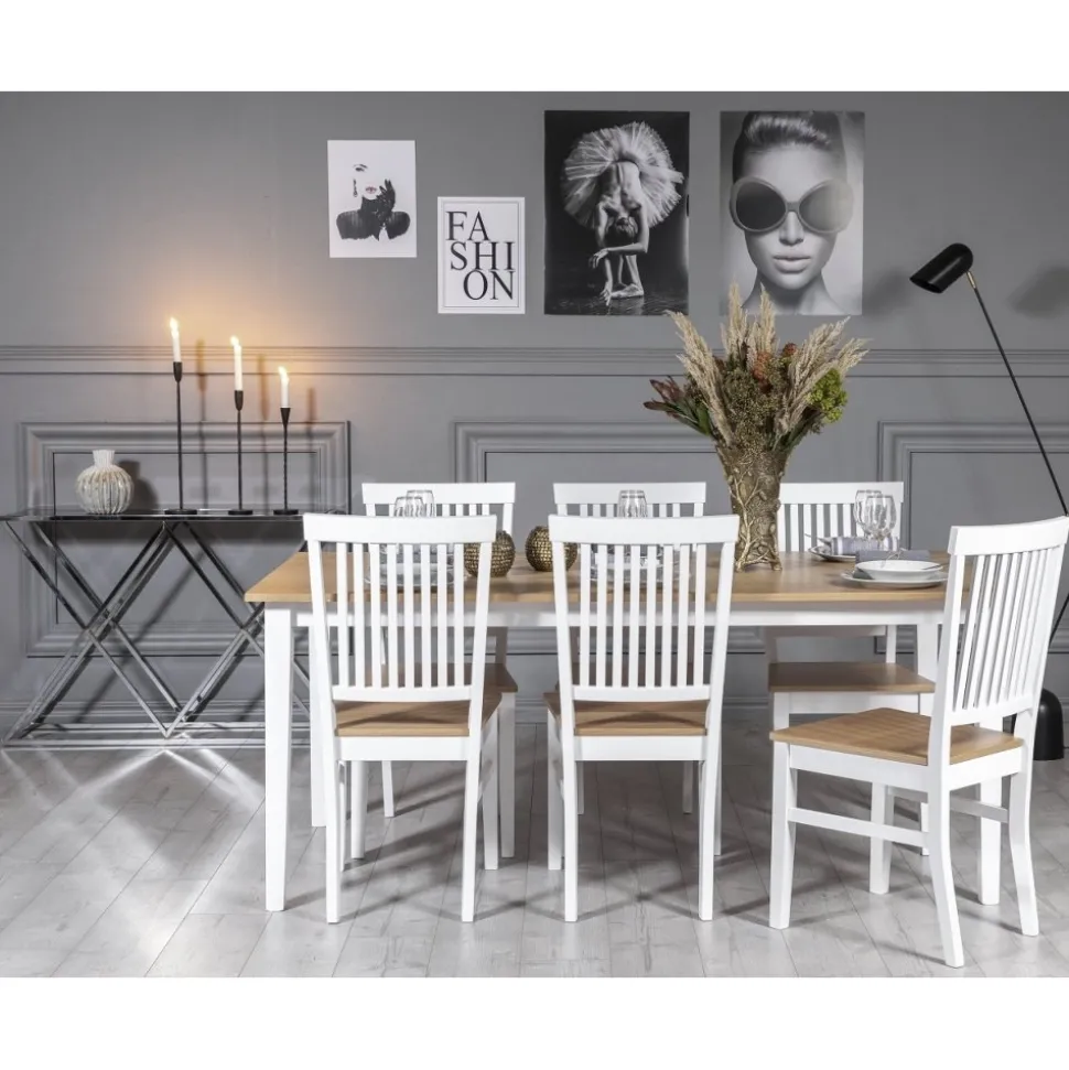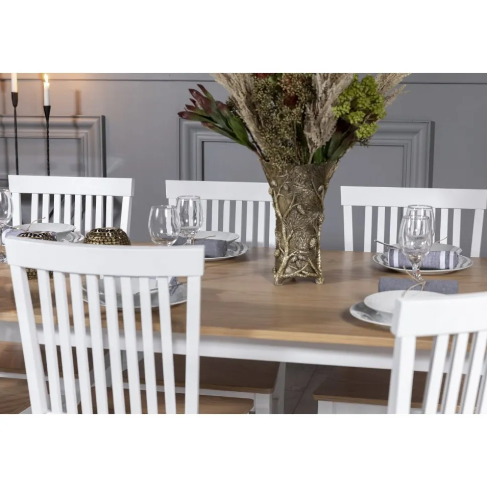 Fårö matgrupp: Bord 180 cm inklusive 6 st Fårö stolar - Ek/vit