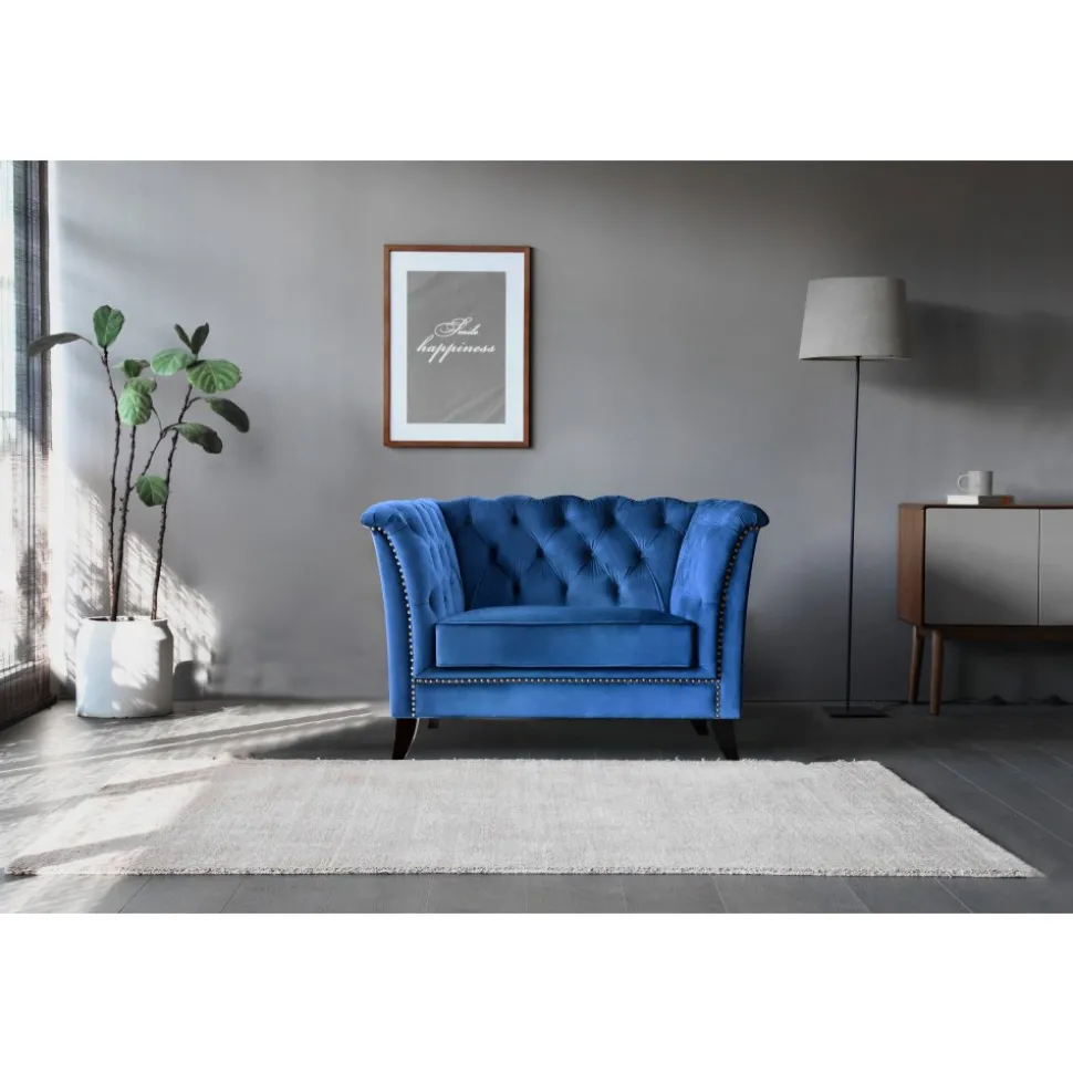 - Fåtölj blå Chesterfield – Milton