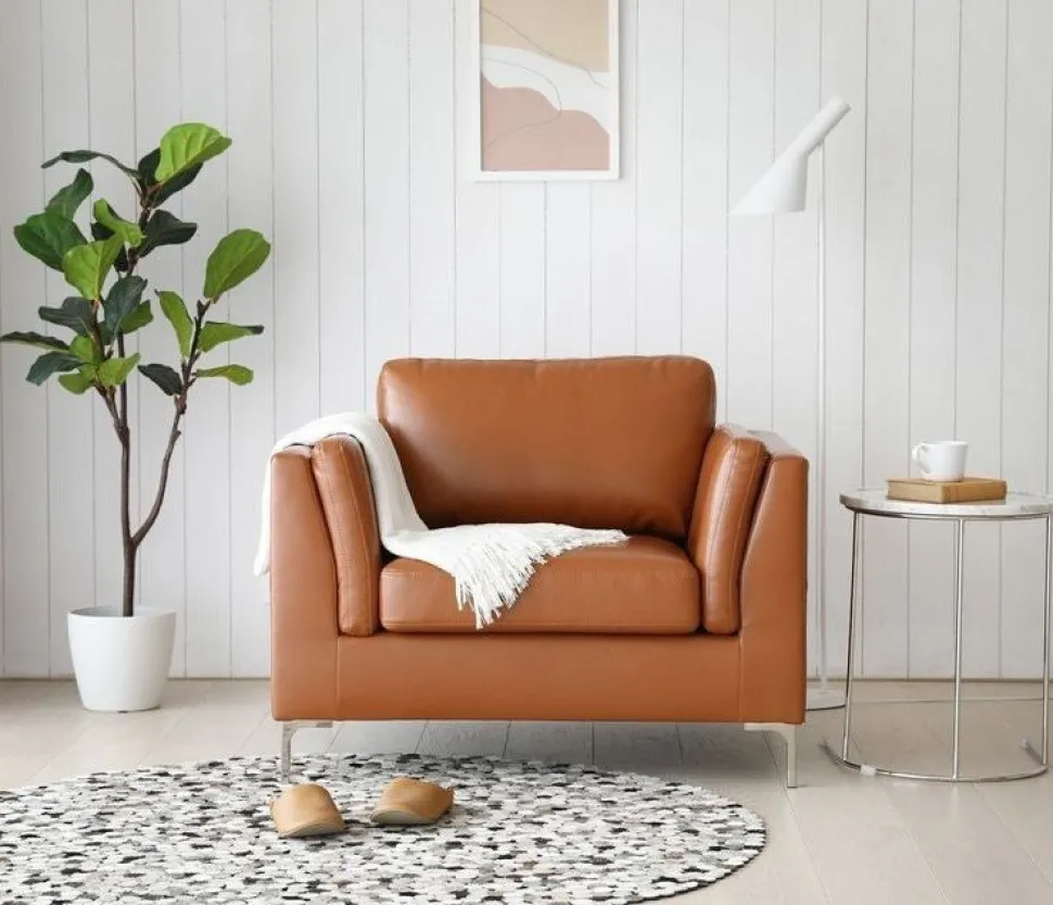 - Fåtölj cognacs färgat konstläder – Cansas