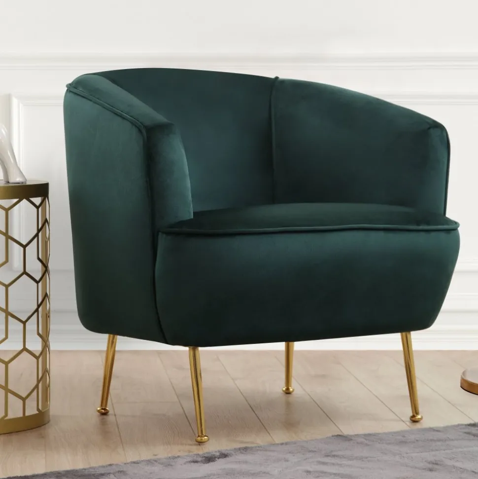 Fåtölj av trä och metall med klädsel av polyester.