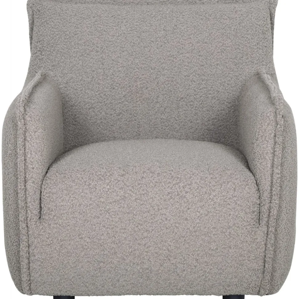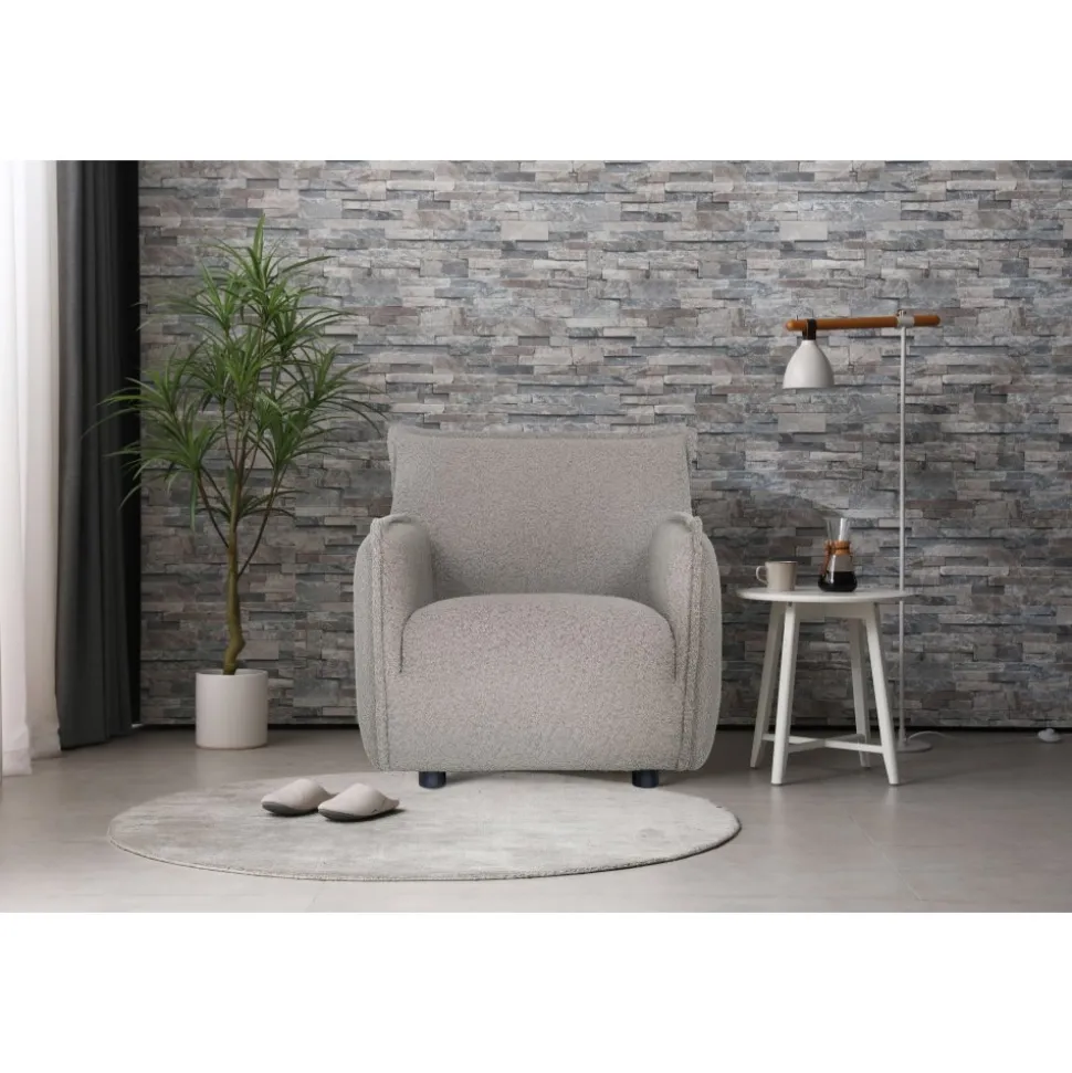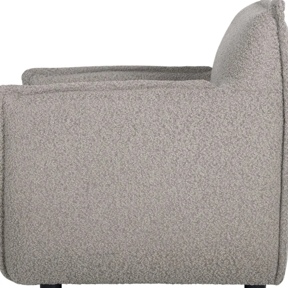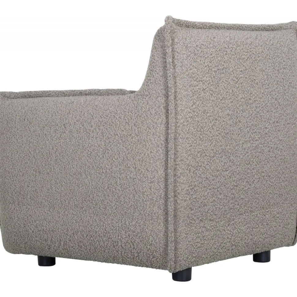 Trendig med klädsel i gråbrunt bouclè tyg och svarta runda diskreta ben. Fåtöljen blir en accesoar i vardagsrummet. Birka fåtölj kommer helt monterad förutom benen som enkelt skruvas på fåtöljen.