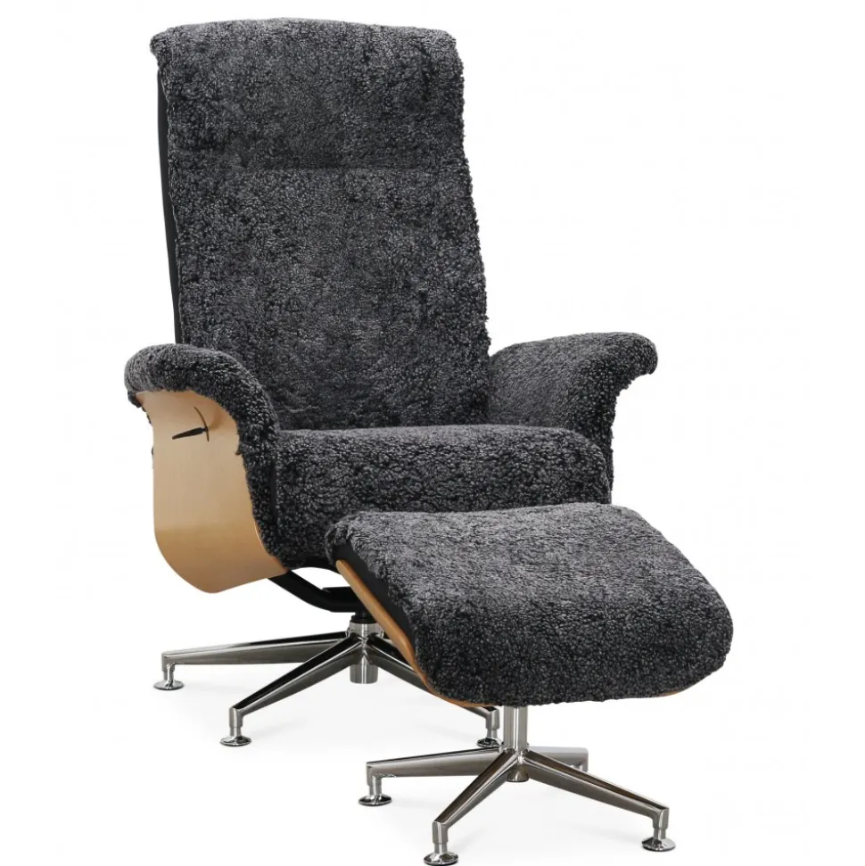 Fåtölj med fotpall fårskinn ek/antracit - Ulla + Fläckborttagare för möbler