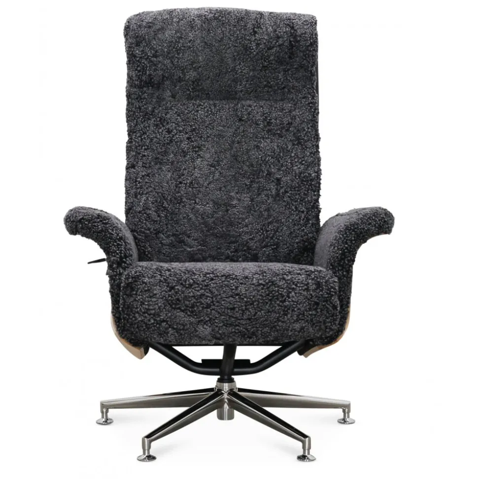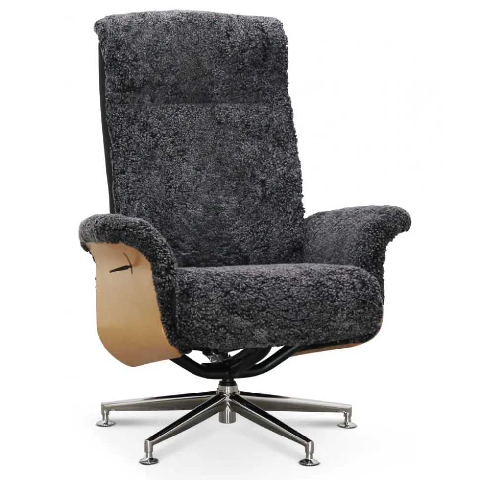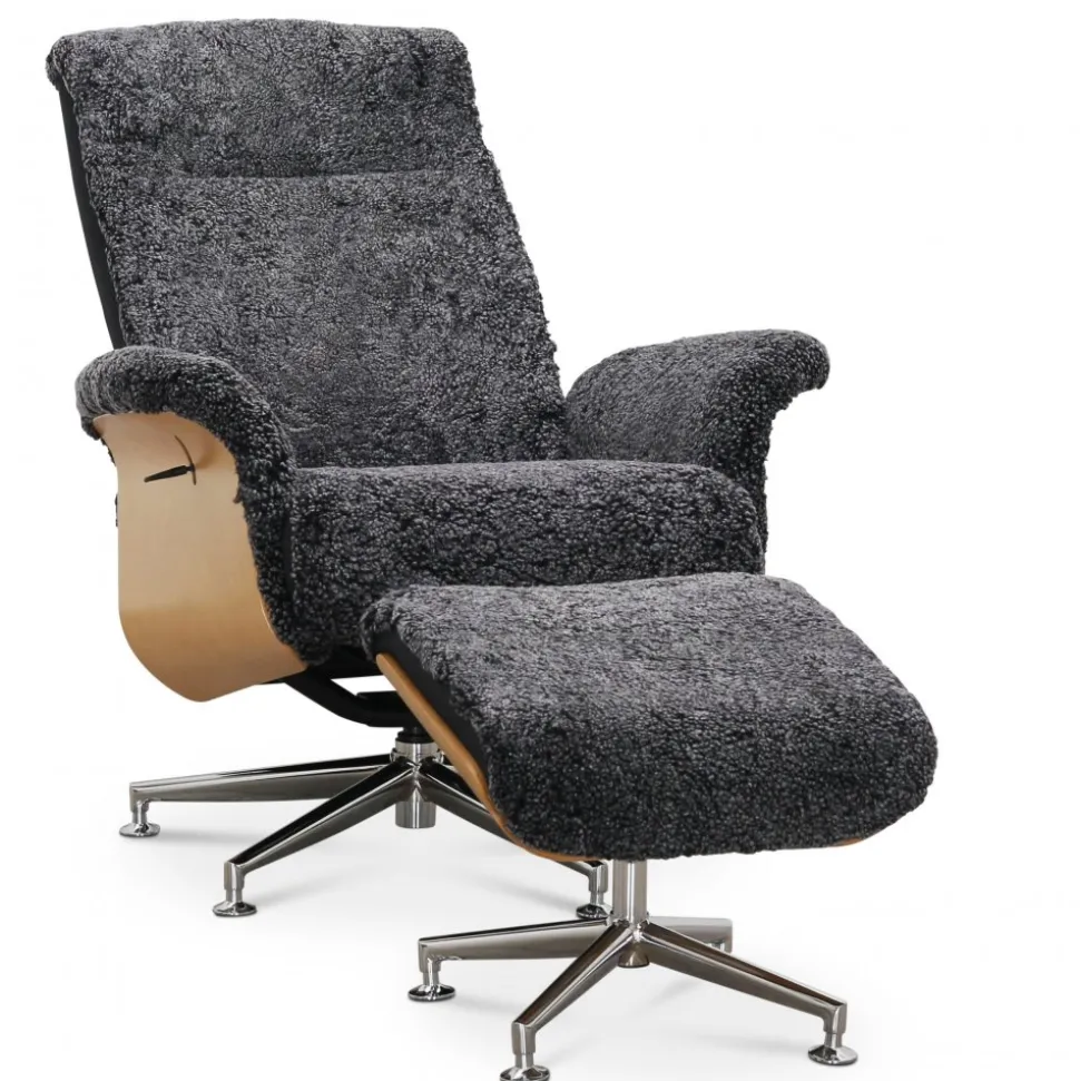 Fåtölj med fotpall fårskinn ek/antracit – Ulla + Fläckborttagare för möbler