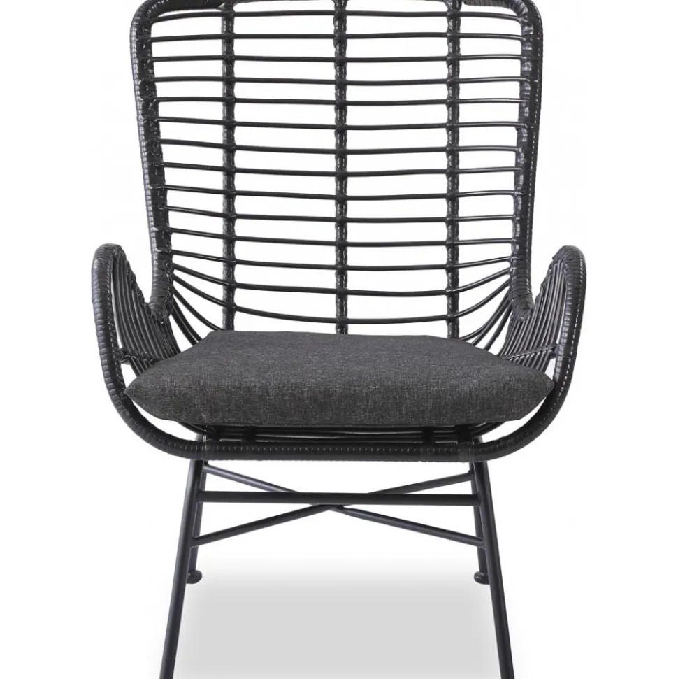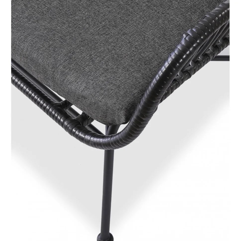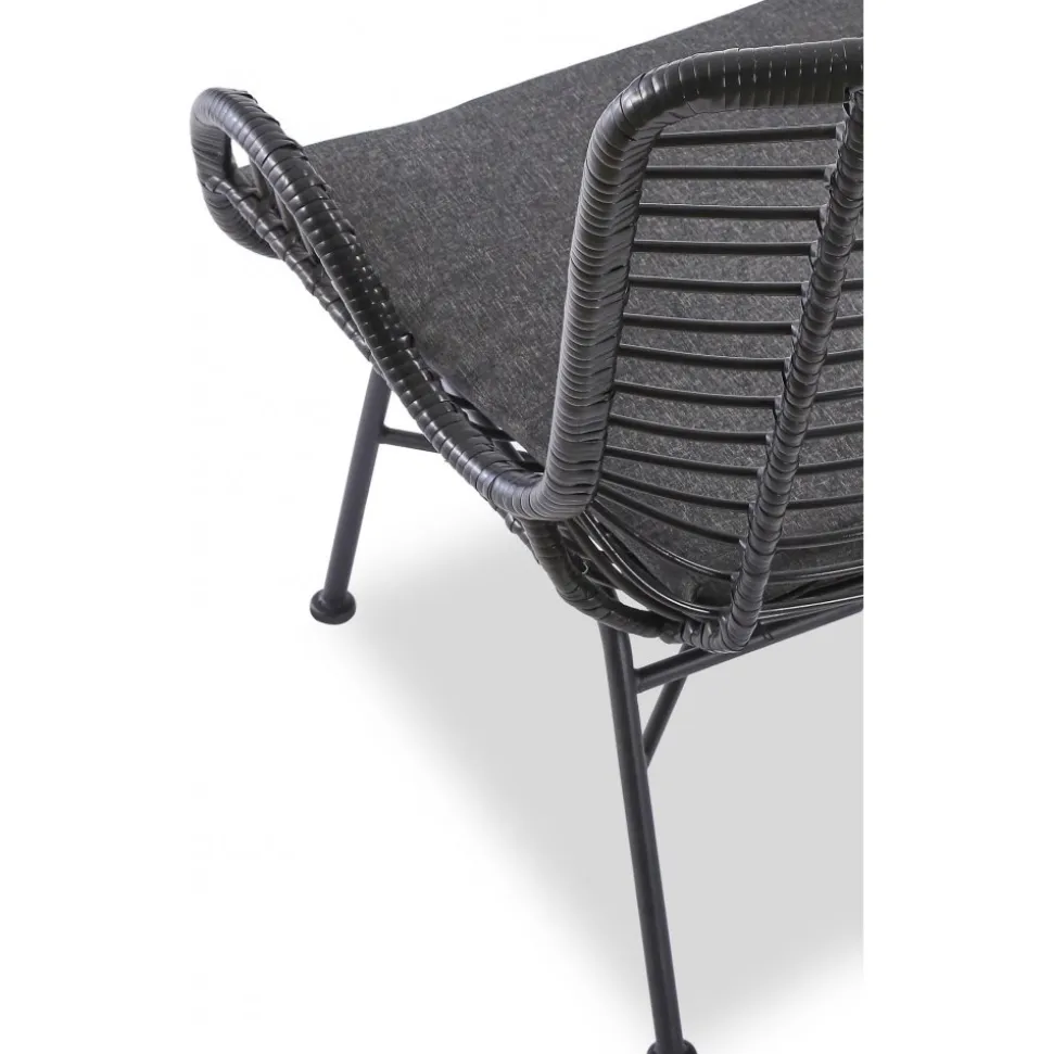 En stilfull och bekväm som kombinerar klassisk design med hållbara material. Tillverkad av slitstark med ett stabilt underrede i stål och en mjukt klädd sits för extra komfort. Perfekt för både uteplatsen och inomhusmiljöer.