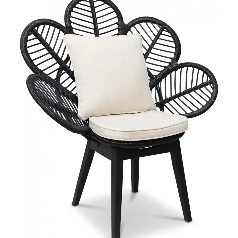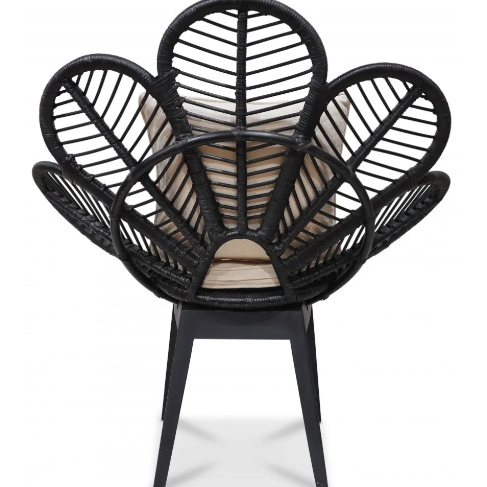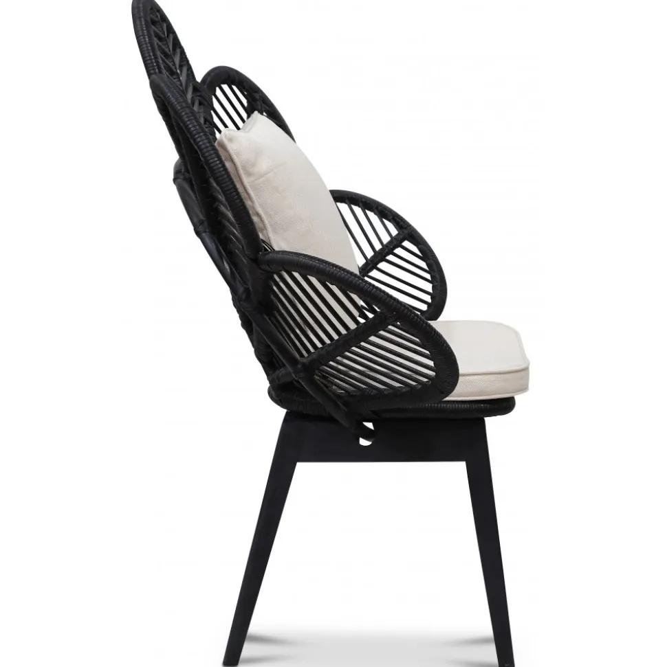 Peacock loungefåtölj i flätad och bunden i svartbetsad rotting. Fantastisk handarbete som alltid håller. Sitt och ryggdyna i ljust tyg.