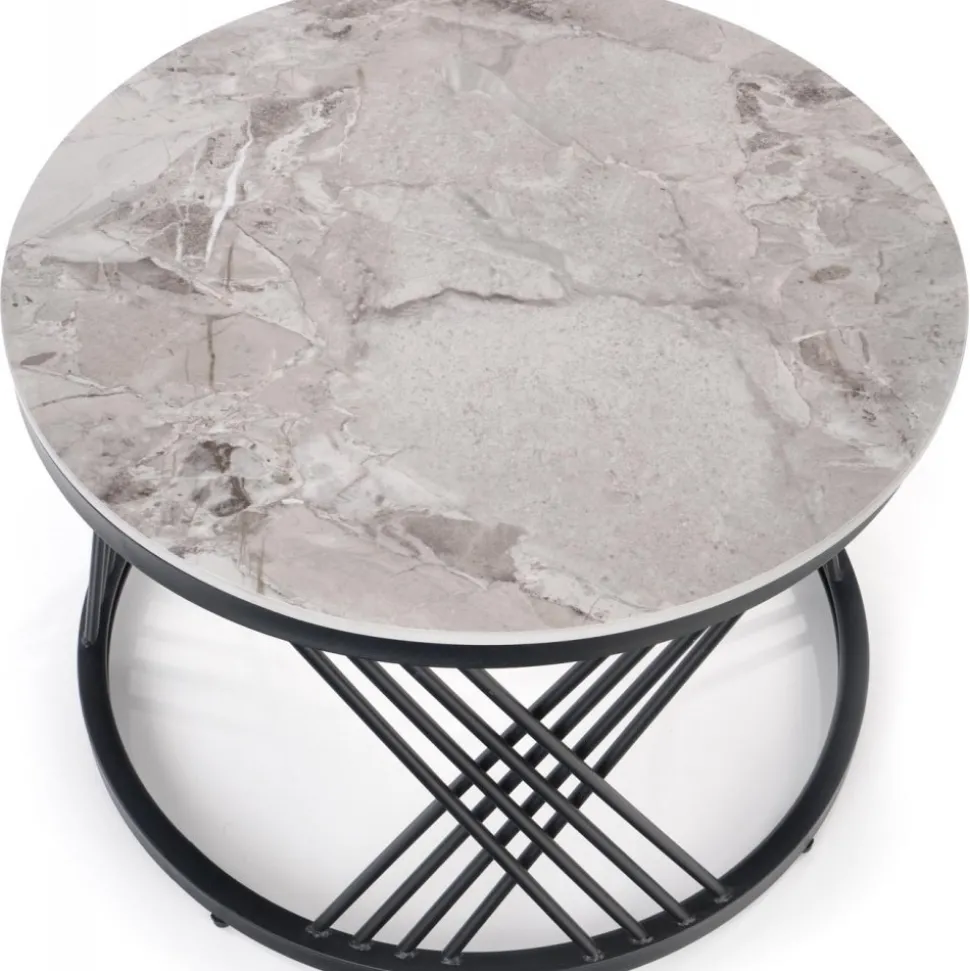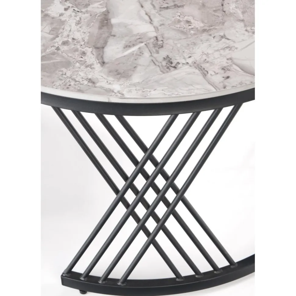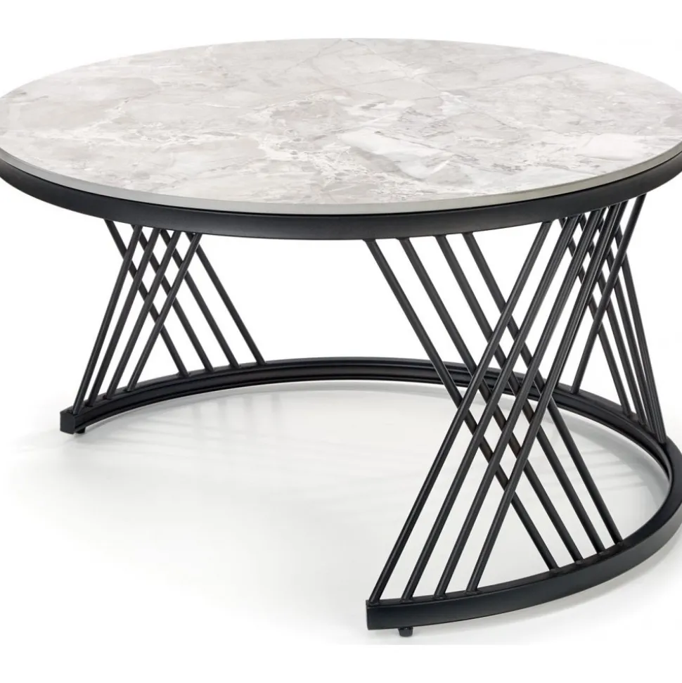 Soffbord med bordsskiva av keramik och underrede av pulverlackerad stål.