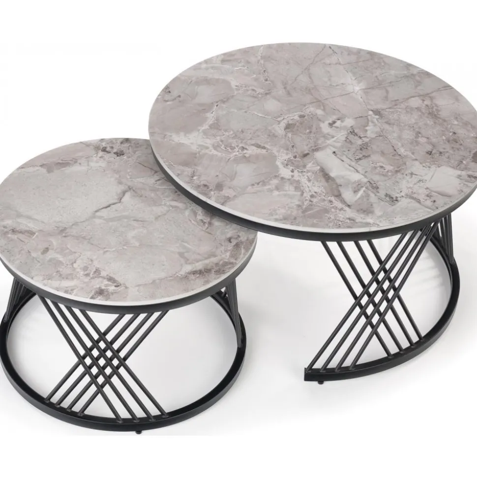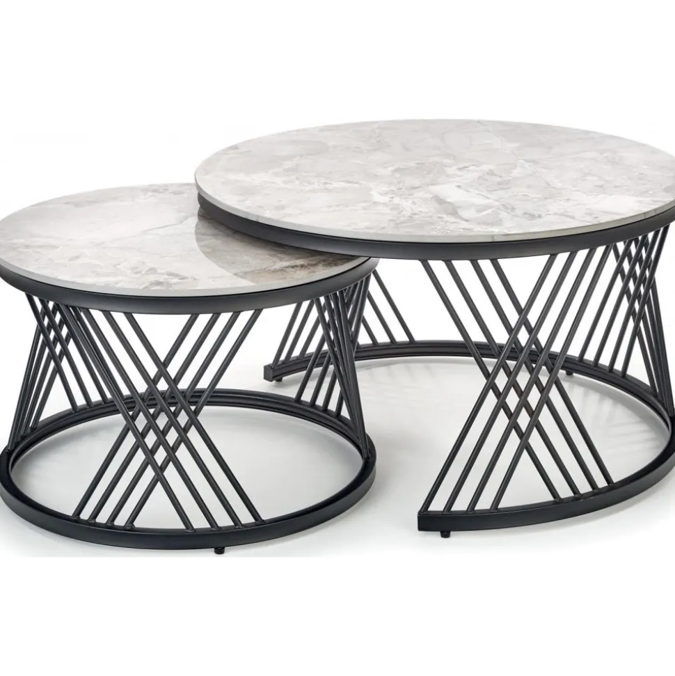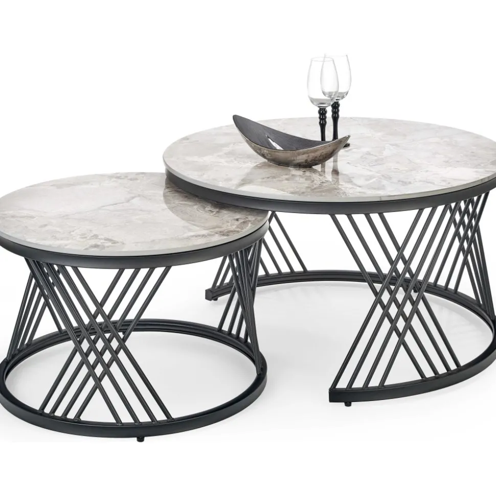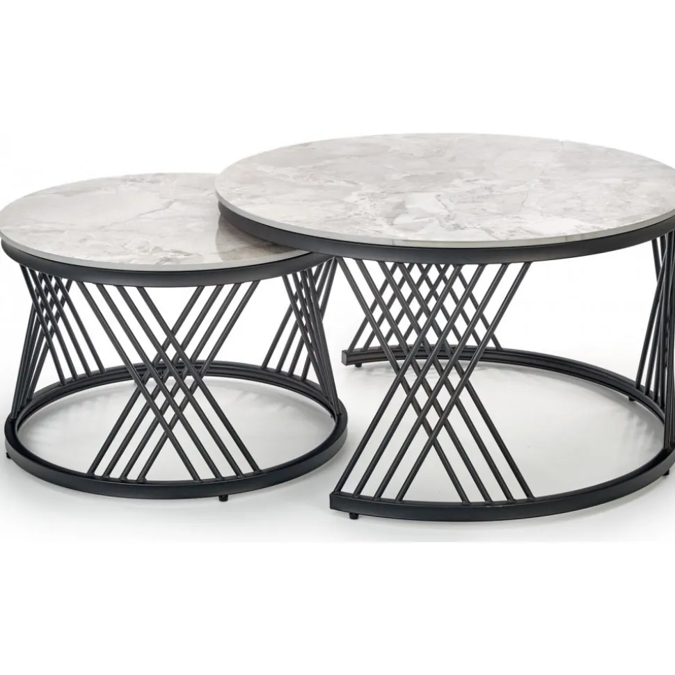Soffbord med bordsskiva av keramik och underrede av pulverlackerad stål.