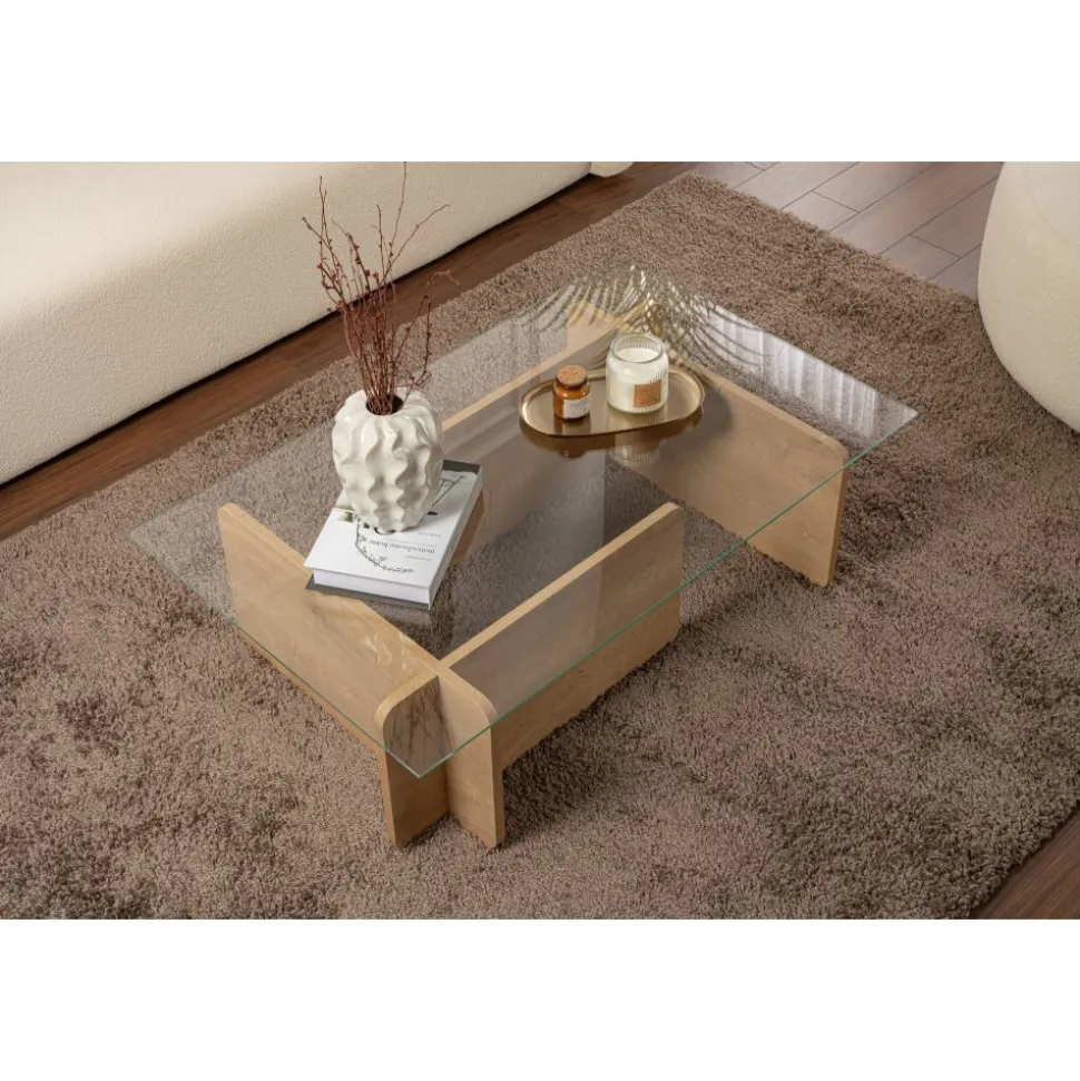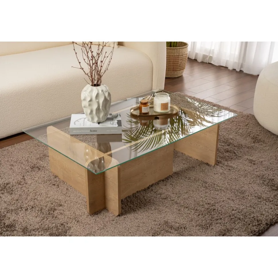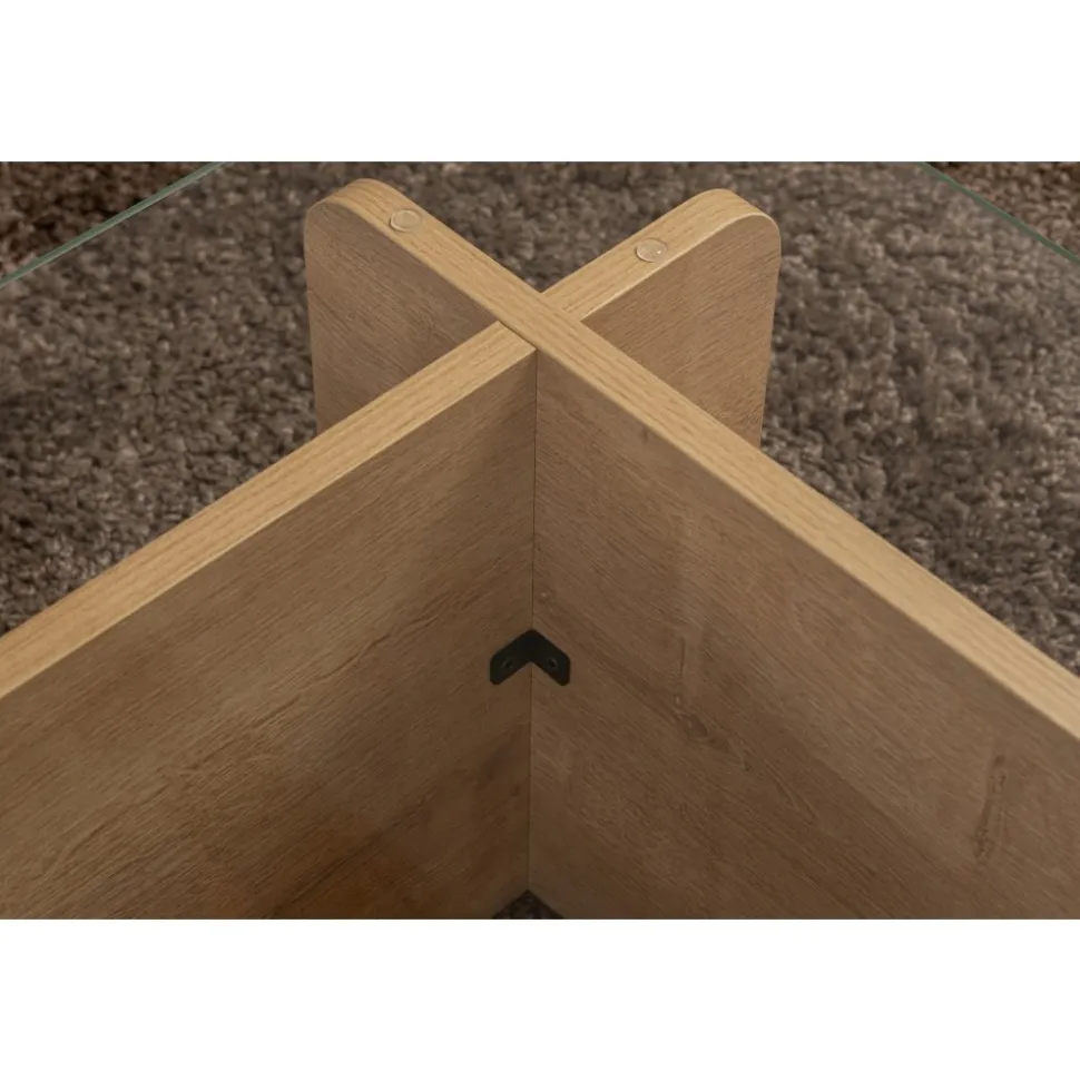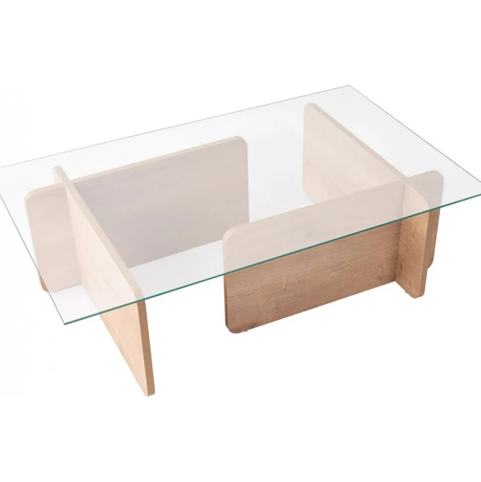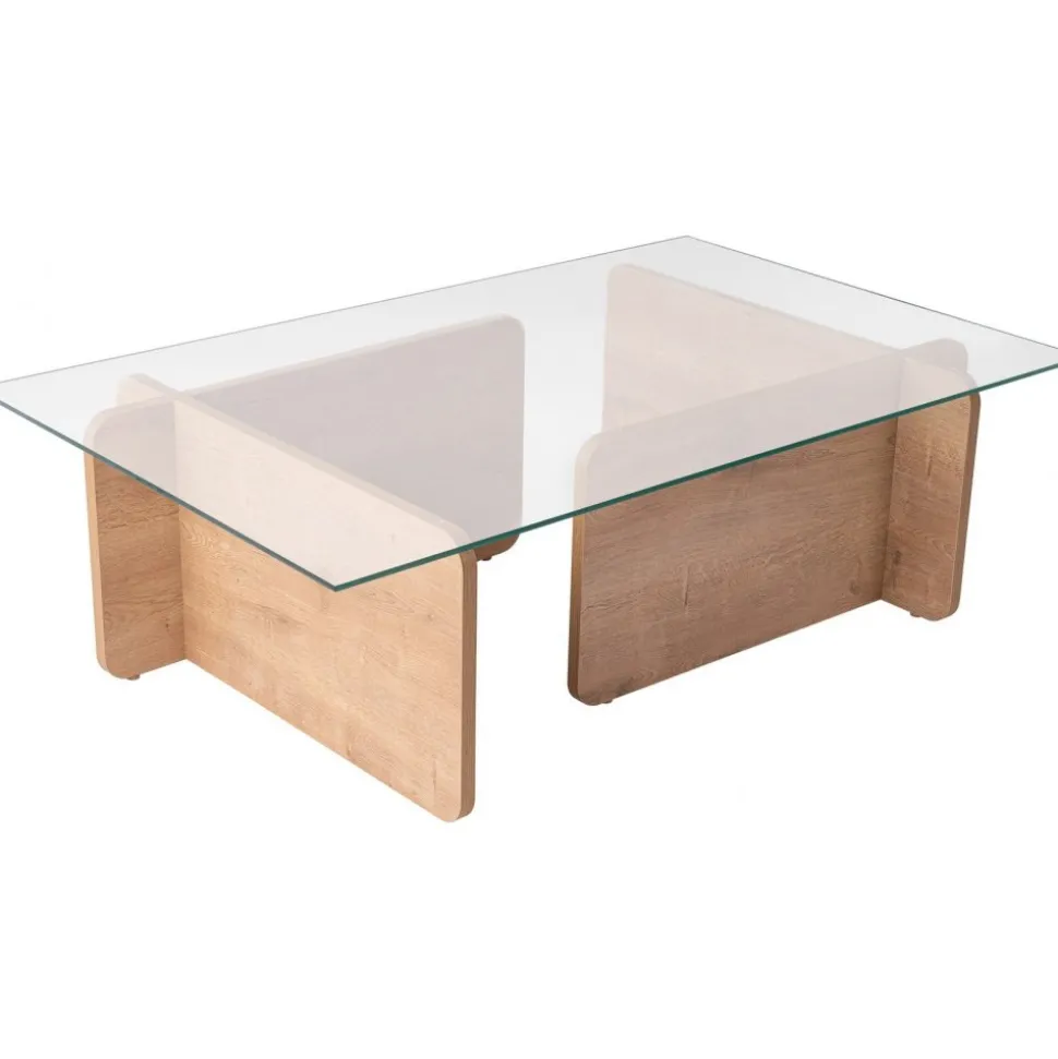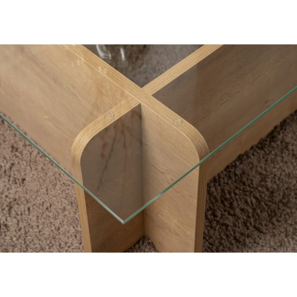 Lyft ditt med vårt fantastiska i ekfärg. Detta soffbord är tillverkat av härdat glas och melaminbelagd spånskiva och utstrålar elegans och sofistikering.