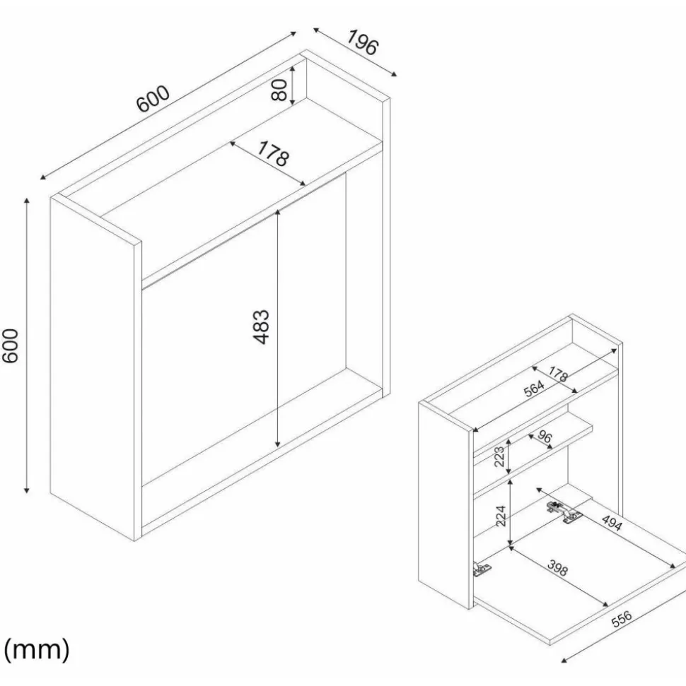 - Öppen: Bredd: 60 cm Höjd: 60 cm Djup: 49,4 cm