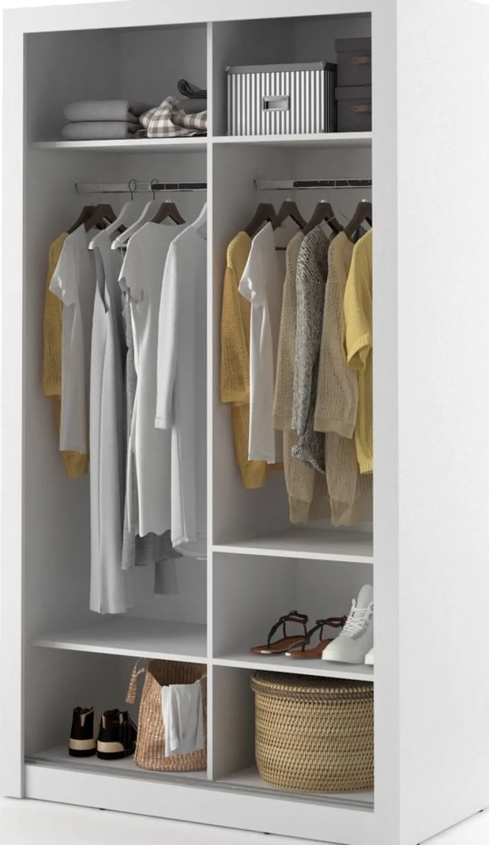 Garderob med skjutdörrar vit 120×215 cm – Mervyn:
