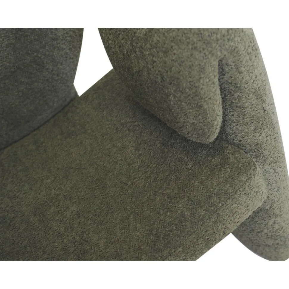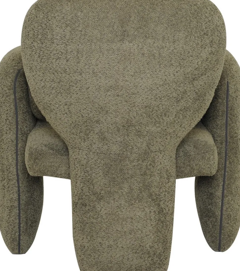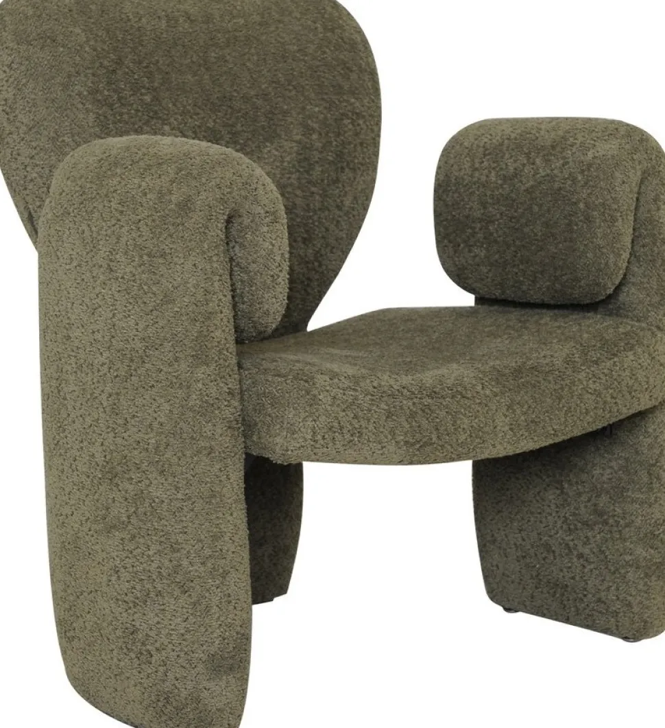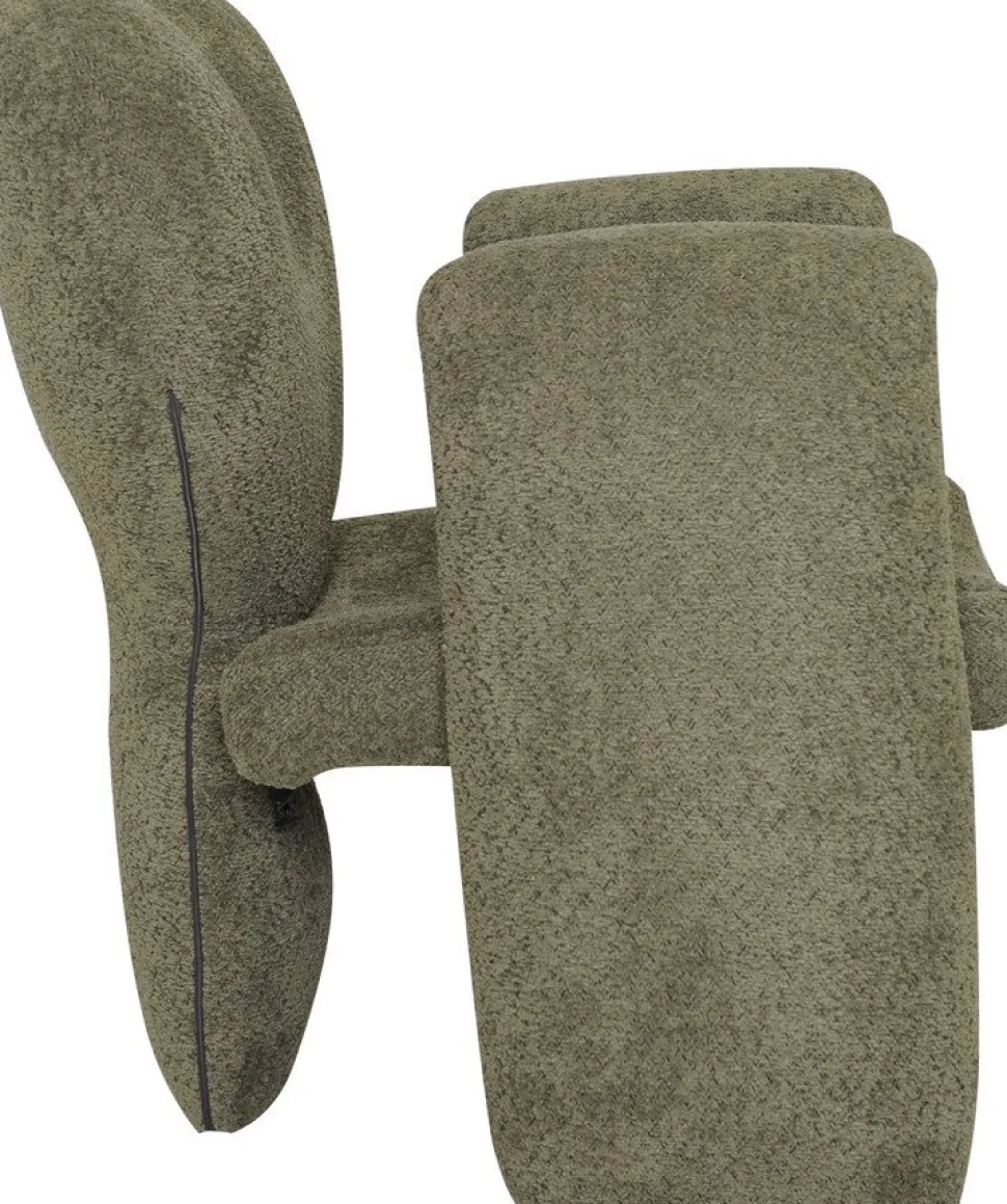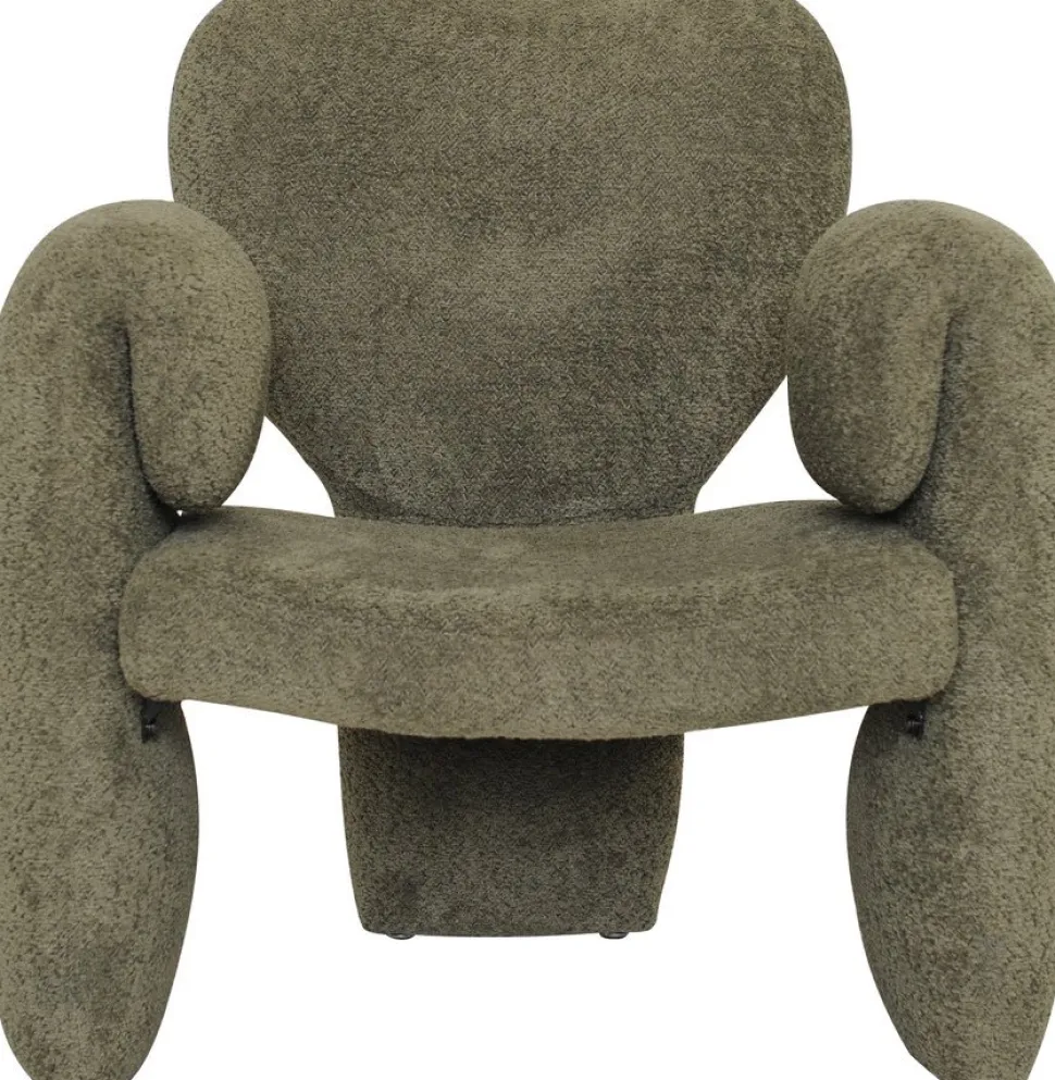 En med skön komofrt och fräckt utförande. Fåtöljen är klädd i ett grönt mjukt chenille tyg.