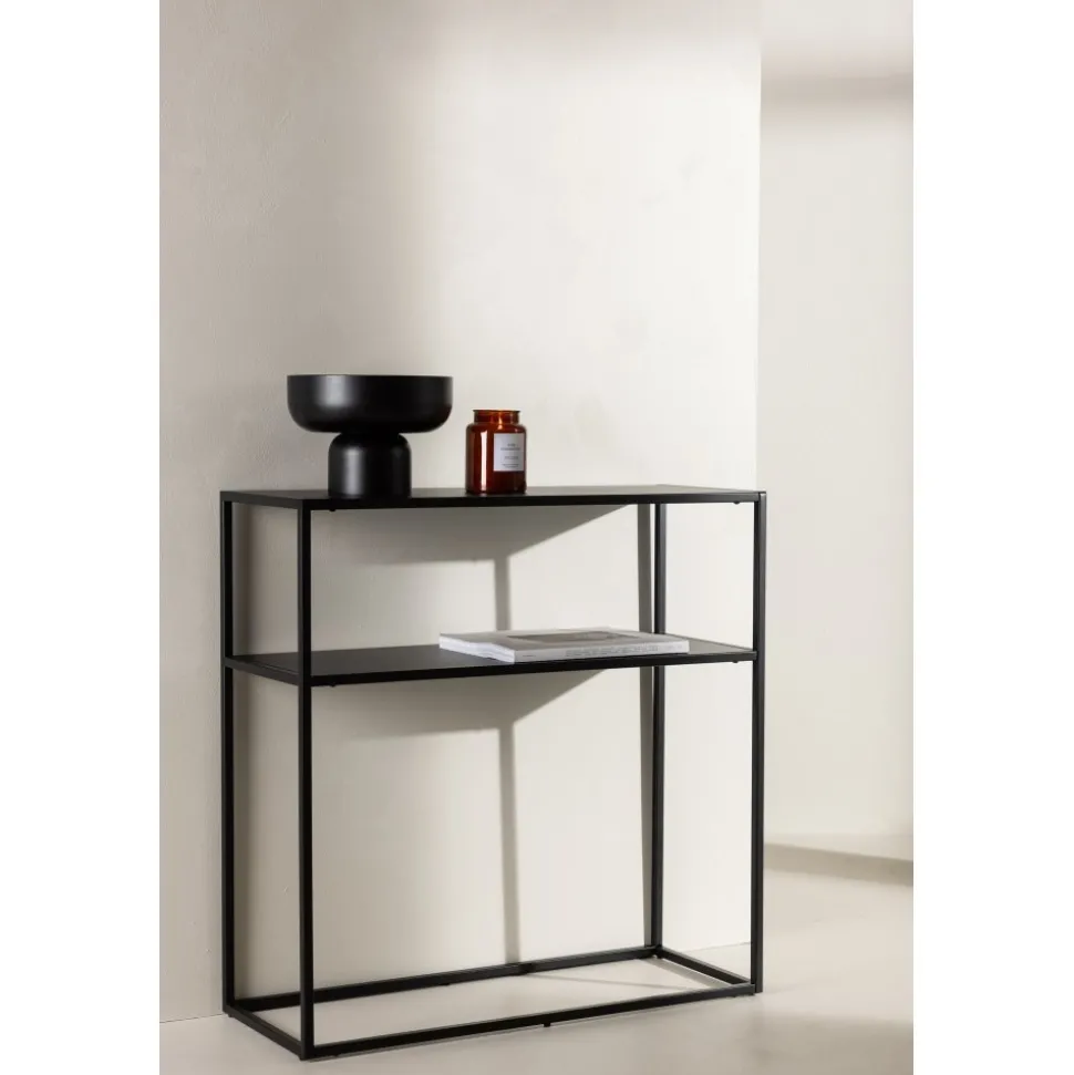 Georgetown – sidobordet där klassisk elegans möter modern funktionalitet! Med det här klassiska sidobordet i hållbart svart stål kan du enkelt skapa en trendsäker atmosfär i ditt charmiga hem där dina vackraste dekorationer och ljusstakar får ta plats. Men det är såklart inte bara vackert att se på utan fyller även en smart funktion. Med sin smarta design har detta ett hyllplan under toppskivan, vilket ger dig extra förvaringsutrymme utan att kompromissa med stilen. Organisera dina vardagliga behov och dekorativa föremål på ett snyggt sätt. Designen är också genomtänkt och går i de minimalistiska trenderna. Det svarta stålet är både hållbart och smälter enkelt in i de flesta inredningsstilar. Skapa en känsla av personlig stil och visa upp din estetik på ett elegant sätt. På så vis blir Georgetown sidobord en förlängning av din personlighet och inredningssmak. Levereras omonterad.