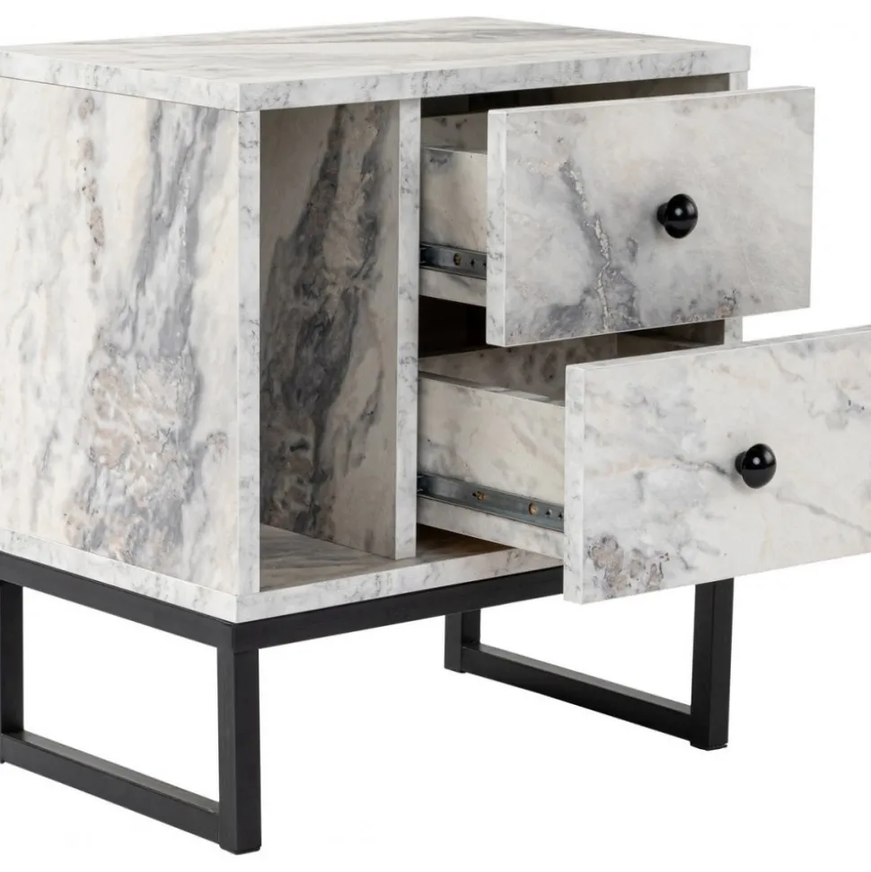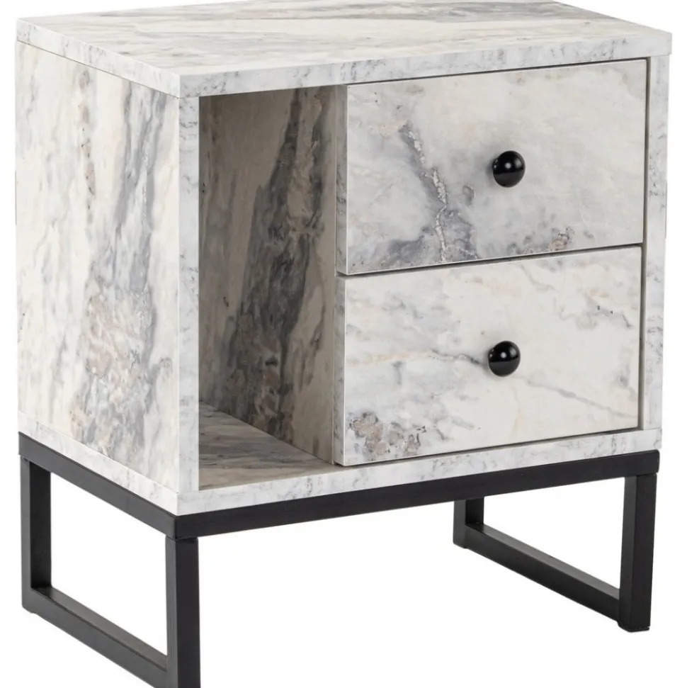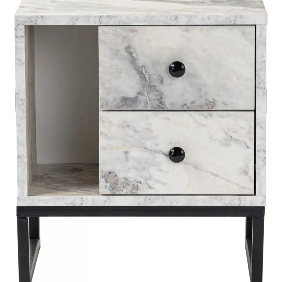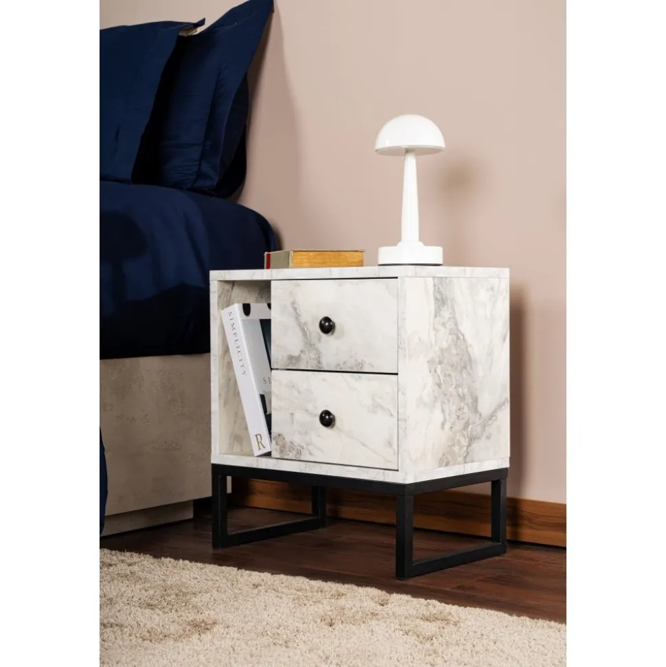 Sängbord av melaminbelagd spånskiva.