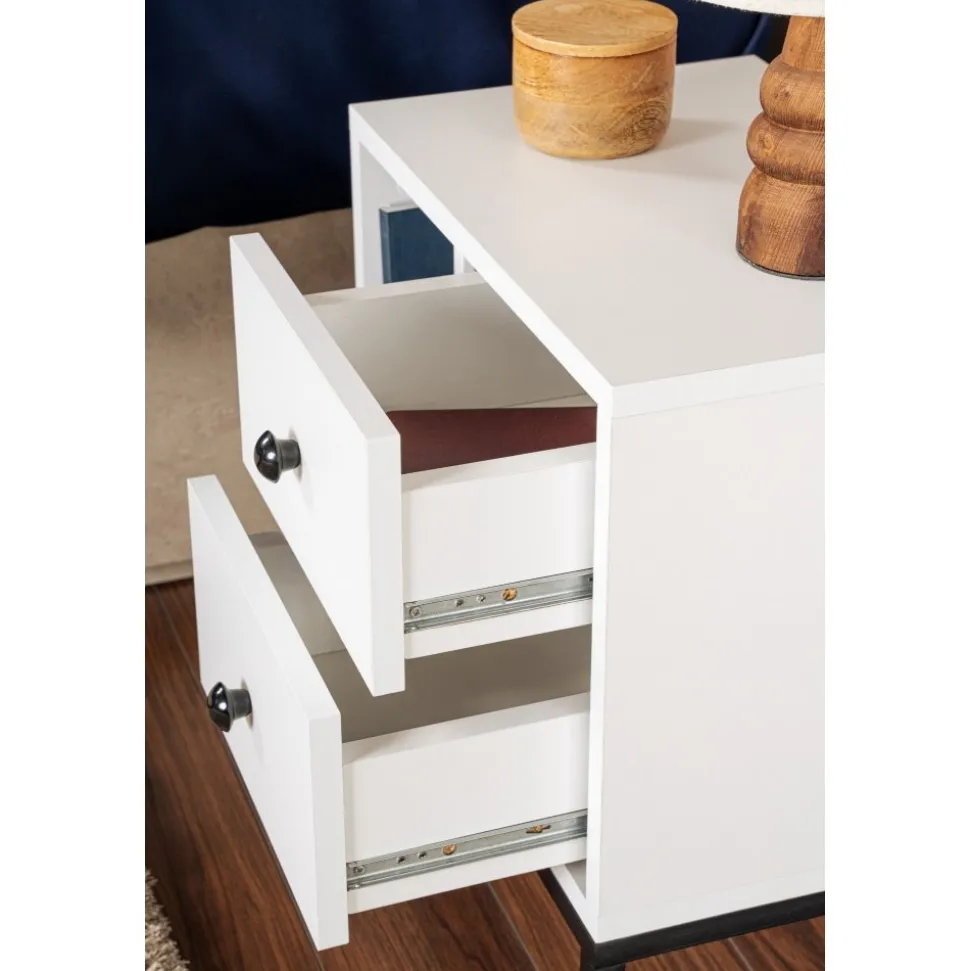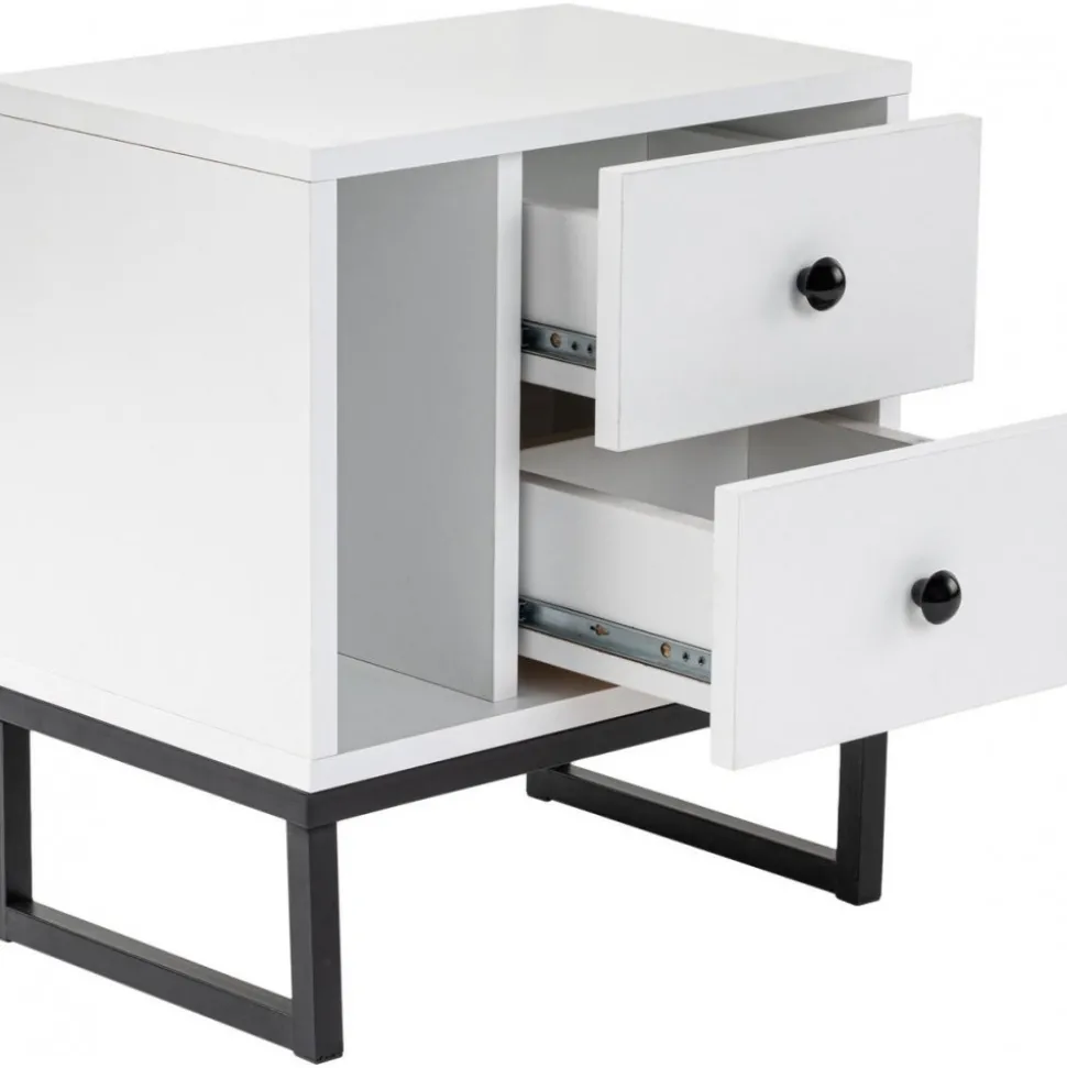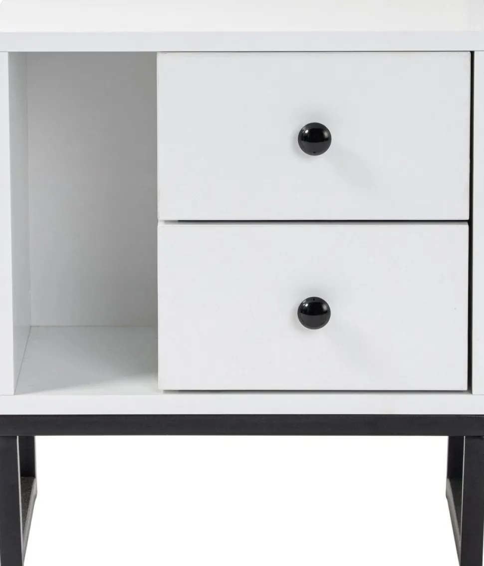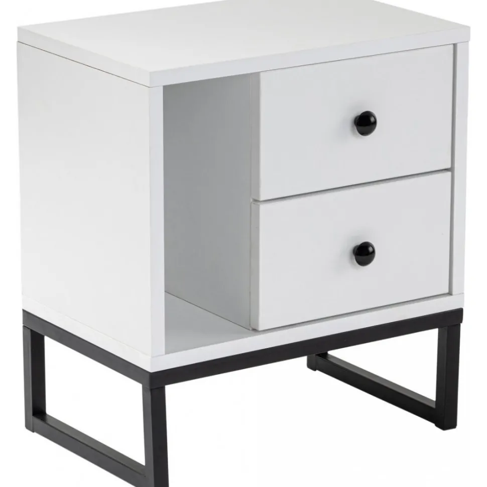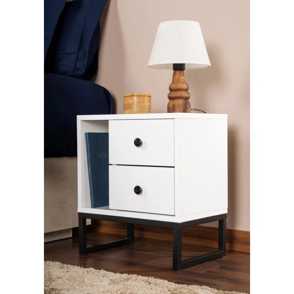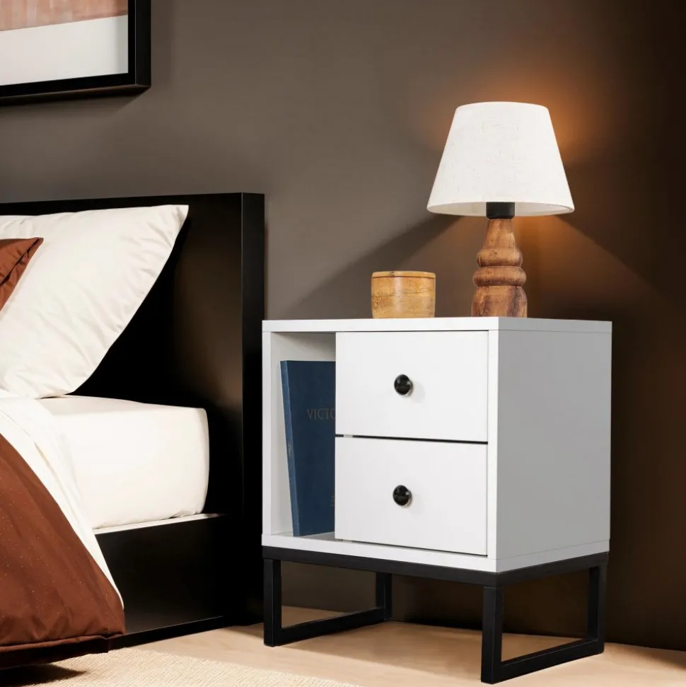 Sängbord av melaminbelagd spånskiva.