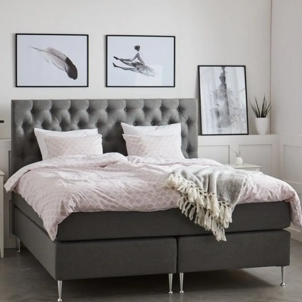 - Grå kontinentalsäng – komplett sängpaket med 7-zons Pocket / Pocket