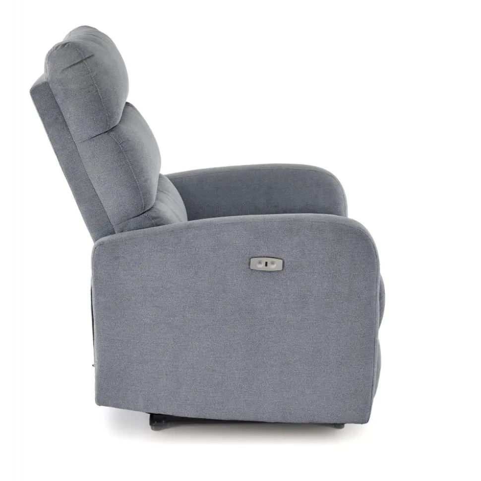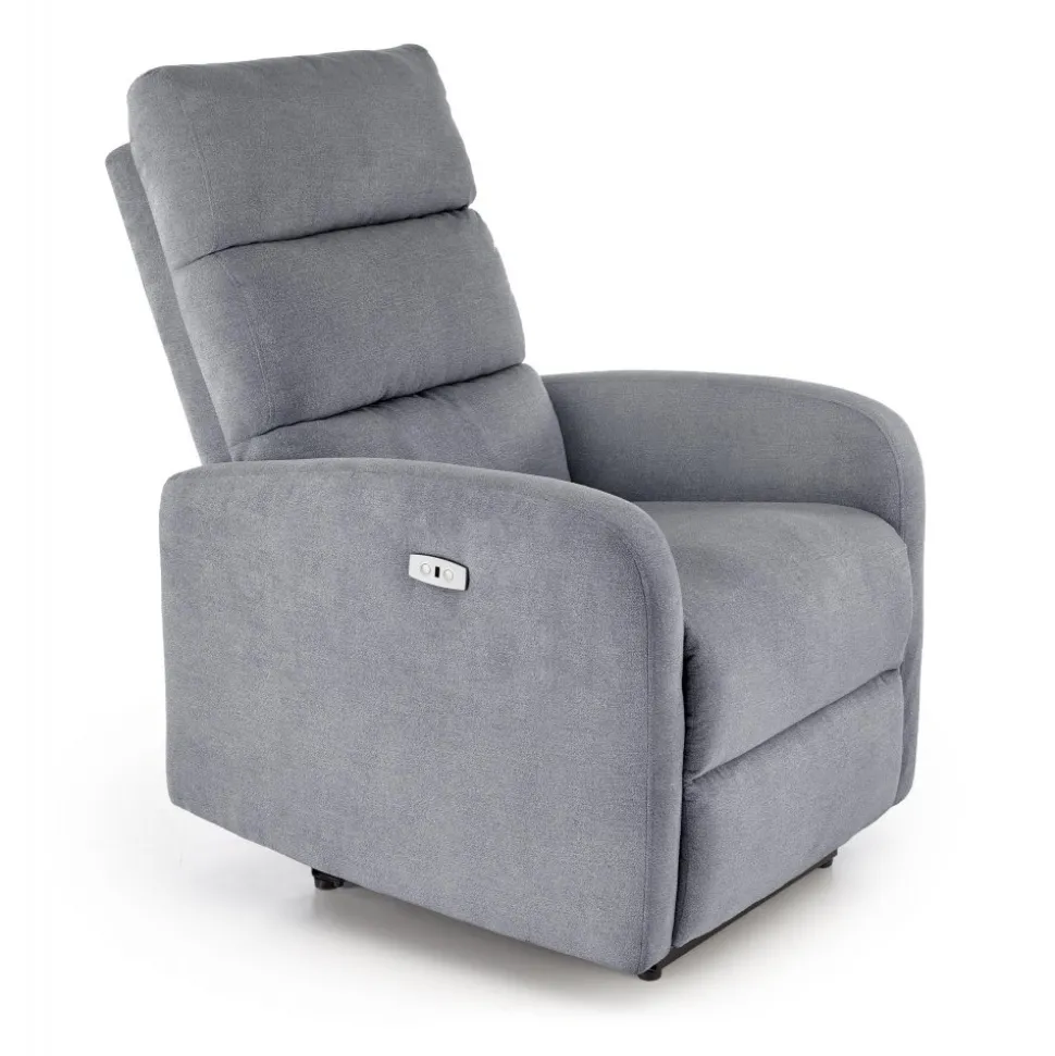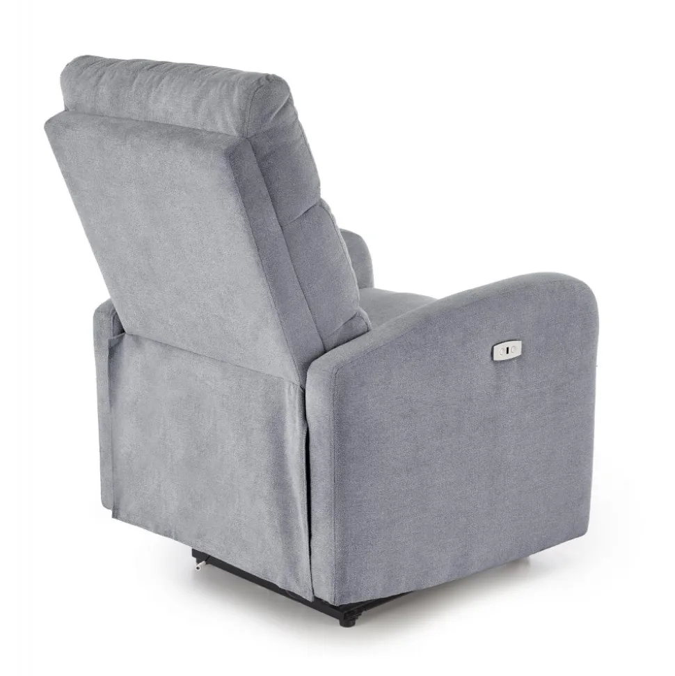 Skön med elmanövrerad justering av rygg och fotstöd. Fåtöljen har även inbyggd USB-kontakt.