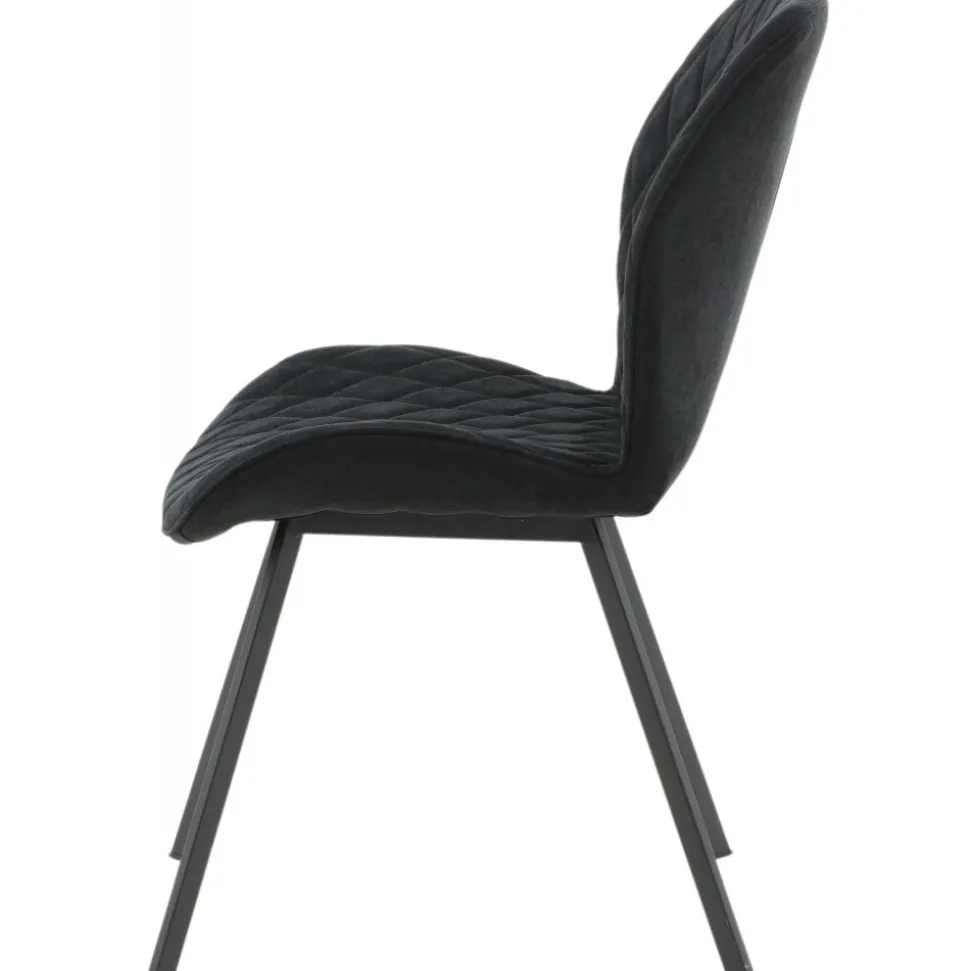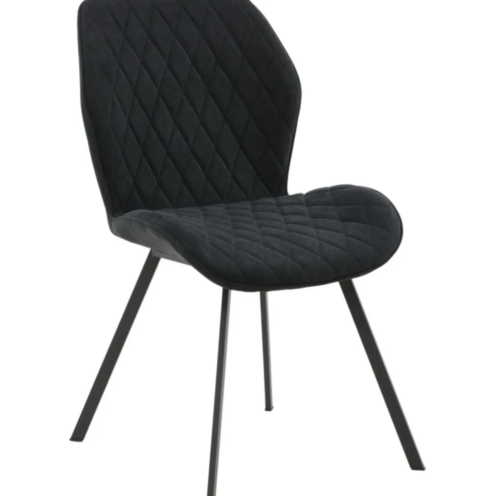 Matstol av metall och trä, klädd med polyestertyg.