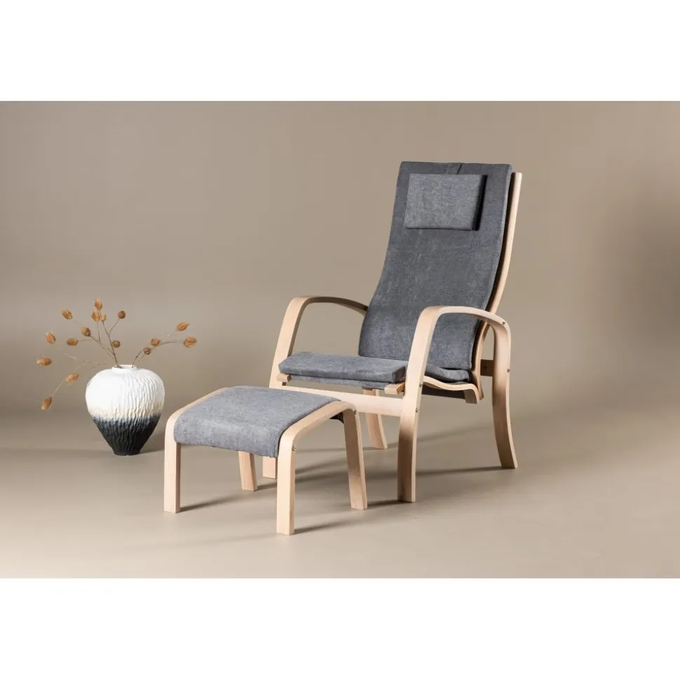 Upplev den harmoniska föreningen av stil och komfort med Grötö och fotpall! Den eleganta plywoodramen i whitewash tillsammans med den mörkgråa klädseln ger inte enbart en härlig färgkontrast – utan tillför även en sofistikerad och tidlös touch till ditt hem. Med sina svängda former och raka kuddar skapar denna kombination en modern och bekväm sittupplevelse som lockar till avkoppling efter en lång dag!