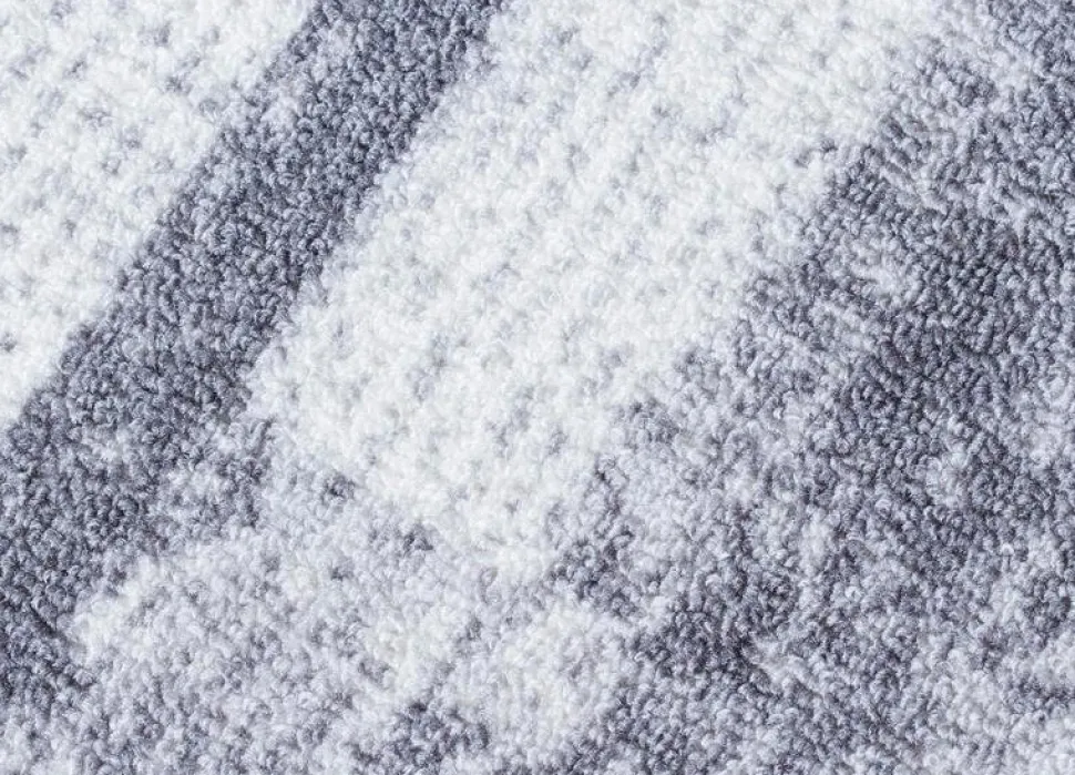 Varese har en ljusgrå bottenfärg med melerat mönster i olika grå toner. Mattan har en mörkgrå langettering och baksidan är gummerad, vilket gör att mattan ligger stadigt på plats.