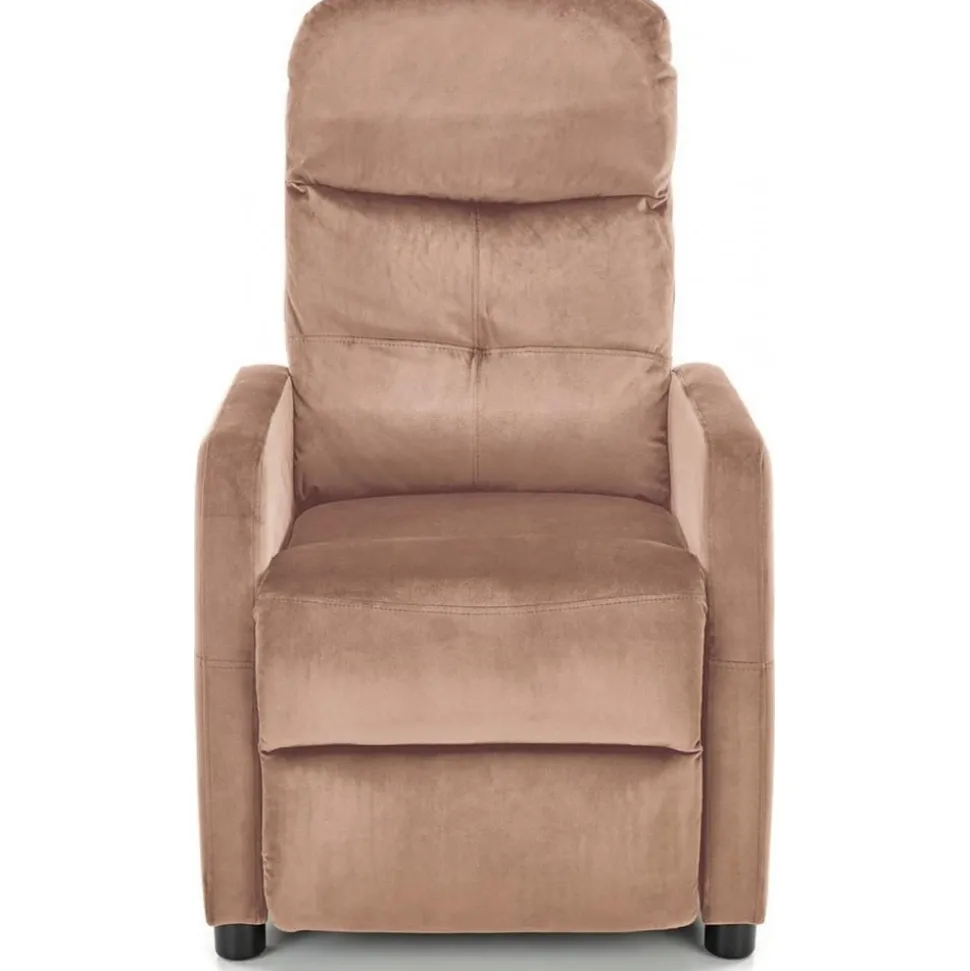 Reclinerfåtölj av polypropen med klädsel av sammetstyg.