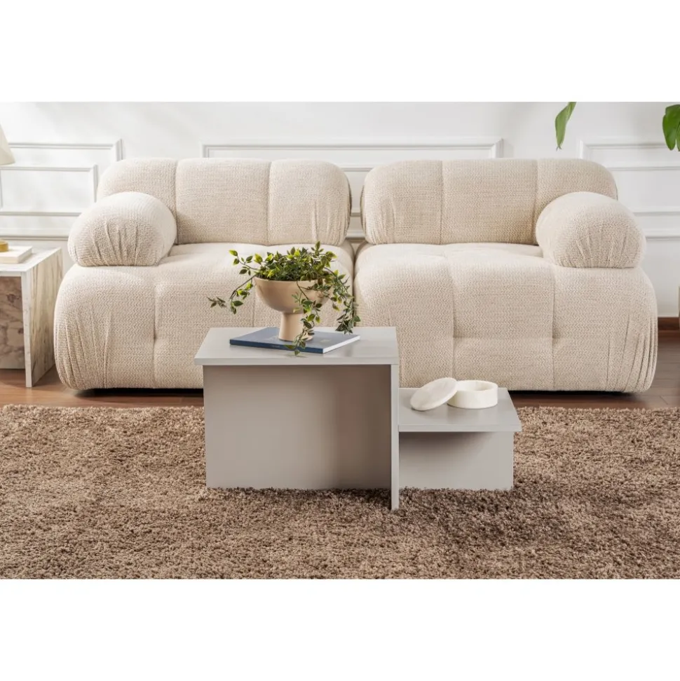 Soffbord av melaminbelagd spånskiva.