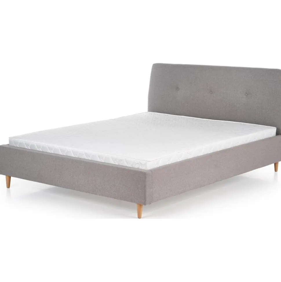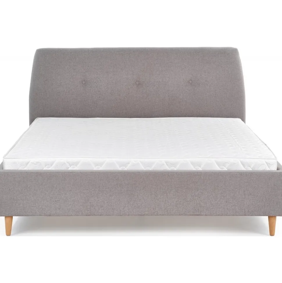 En mysig sängram med en stilren design. Tillverkad i massiv trä med ett härligt al mönstrat utförande och behaglig klädsel i grått tyg. Anpassad för madrasser med måtten 160×200 cm.