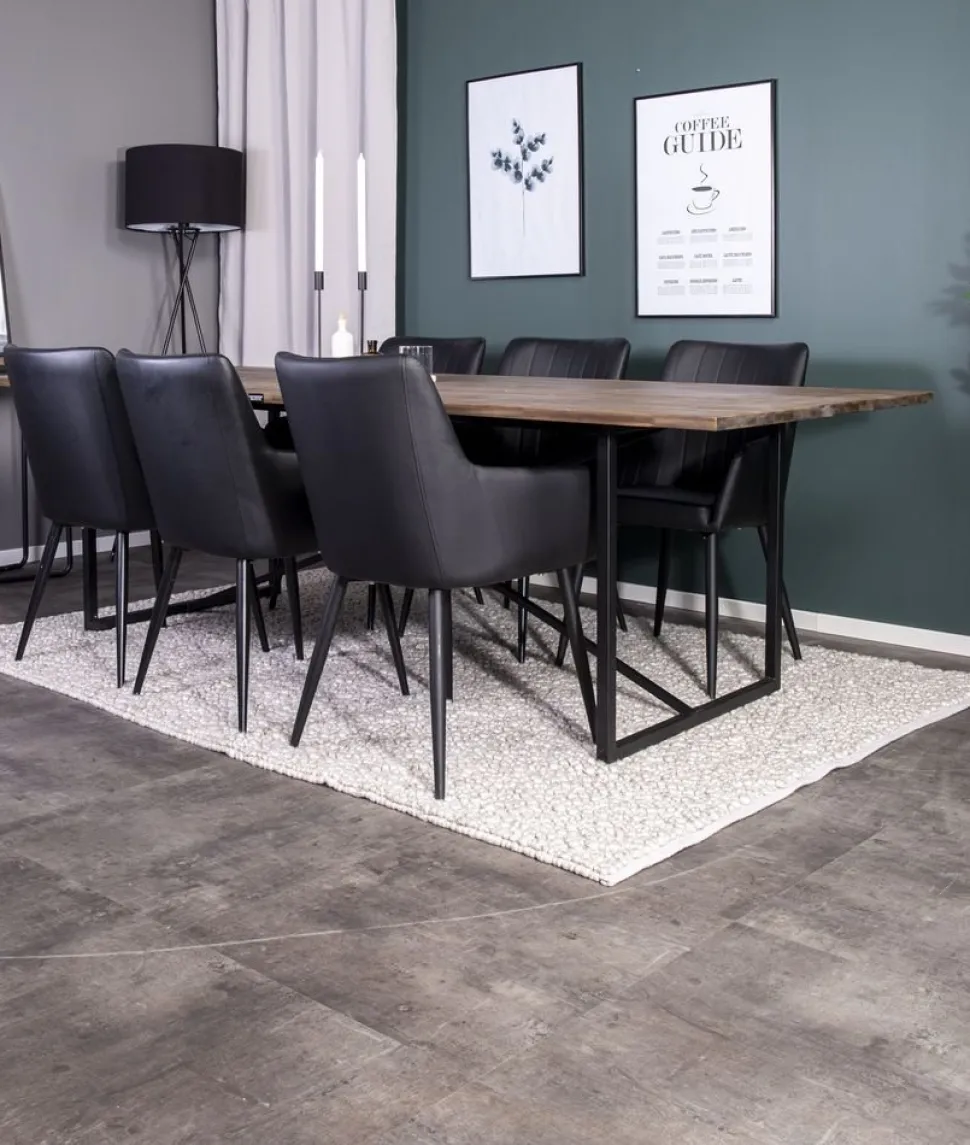 Stort med bordsskiva av teak, brun vintage i färgen. Underrede i svart metall.