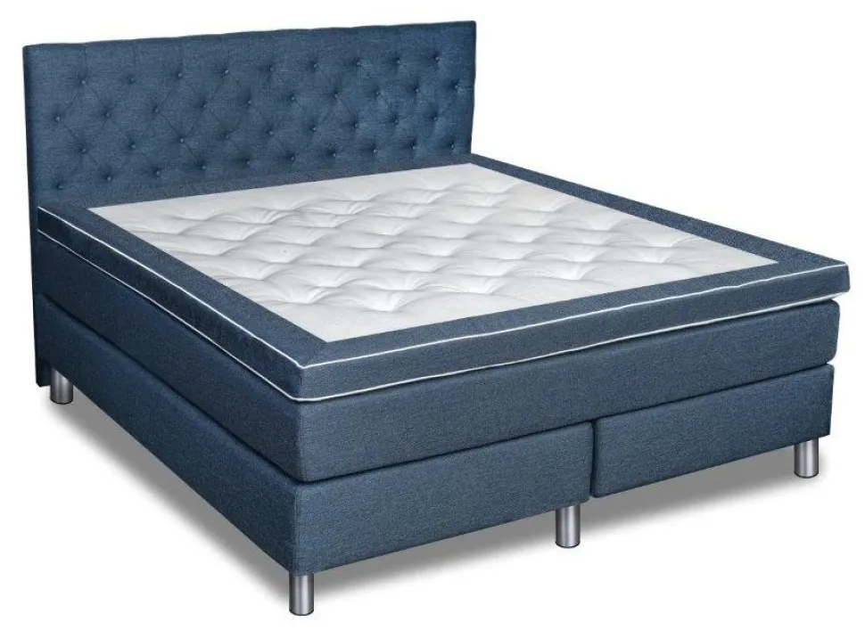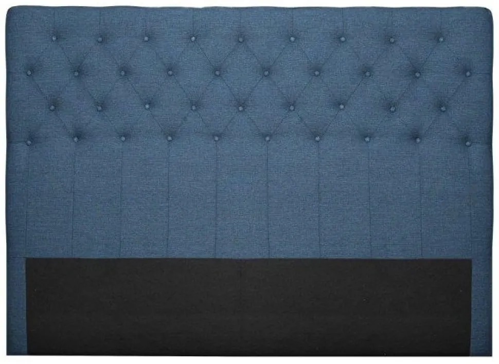 Sänggavel Hilton i Navyblue slitstarkt tyg (Inari 80). Sänggaveln har en klassisk design med djuphäftande knappar för att ge sänggaveln ett så modernt utseende som möjligt i sovrummet.