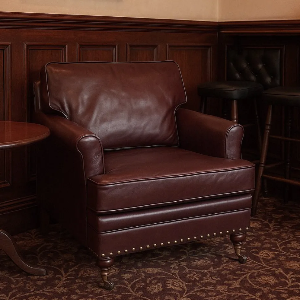 Professor är en klassisk Howard fåtölj med skön sittkomfort. Fåtöljen är klädd i äkta brunt läder. Lädret är antikbehandlat för att få rätt utseende och känsla. Fåtöljen passar utmärkt till vardagsrummet. Till fåtöljen har man satt på de klassiska hjulförsedda frambenen som är ett signum för en Howardfåtöljer.
