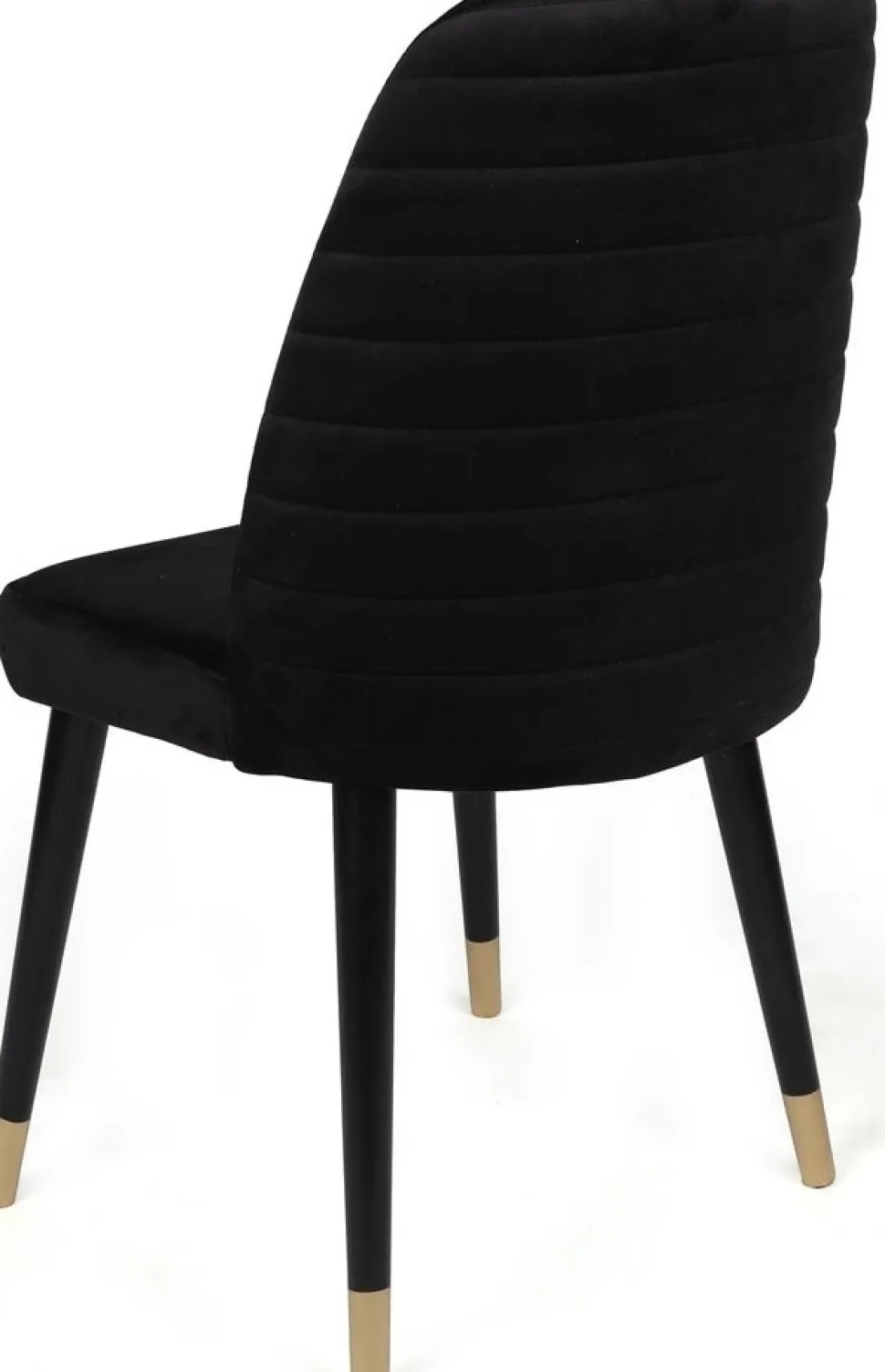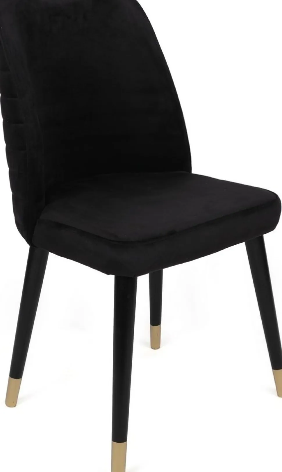 Matstol av metall med klädsel av sammet och ben av avenbok.