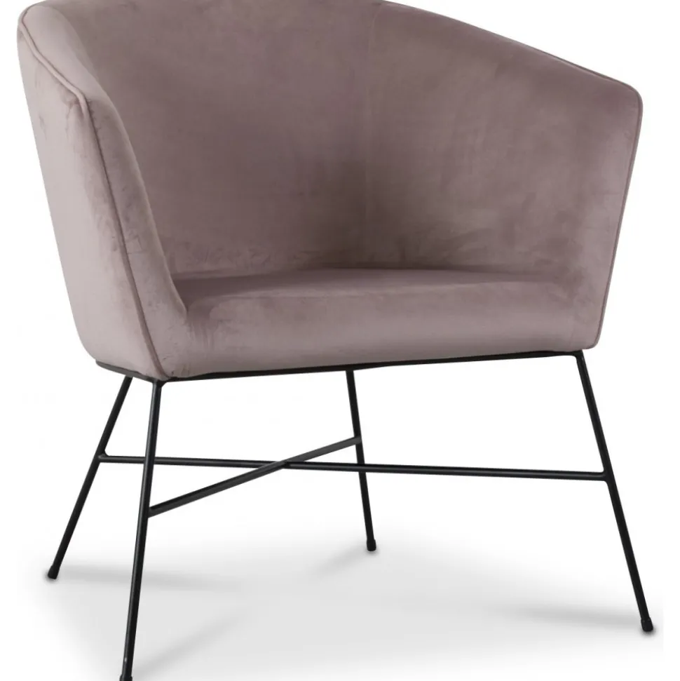 Fåtölj Isabelle har ett retroutseende, god sittkomfort och ett sammetstyg. Svart pulverlackat metallunderrede.