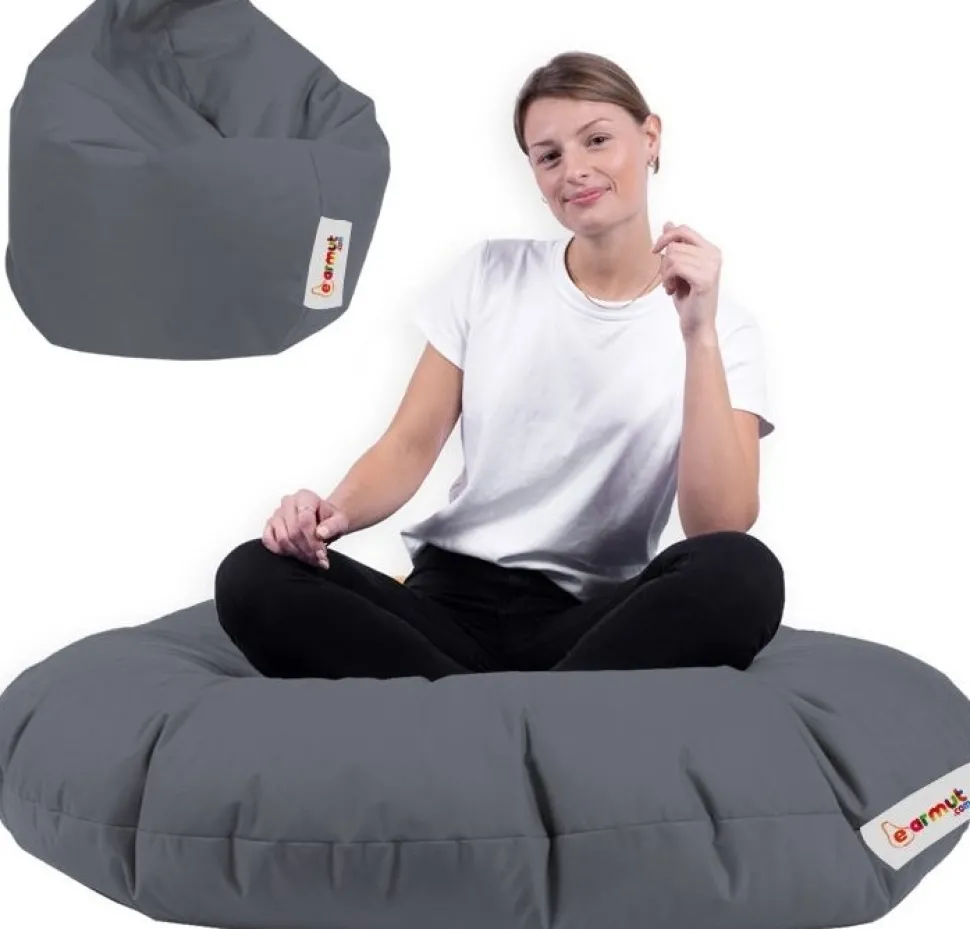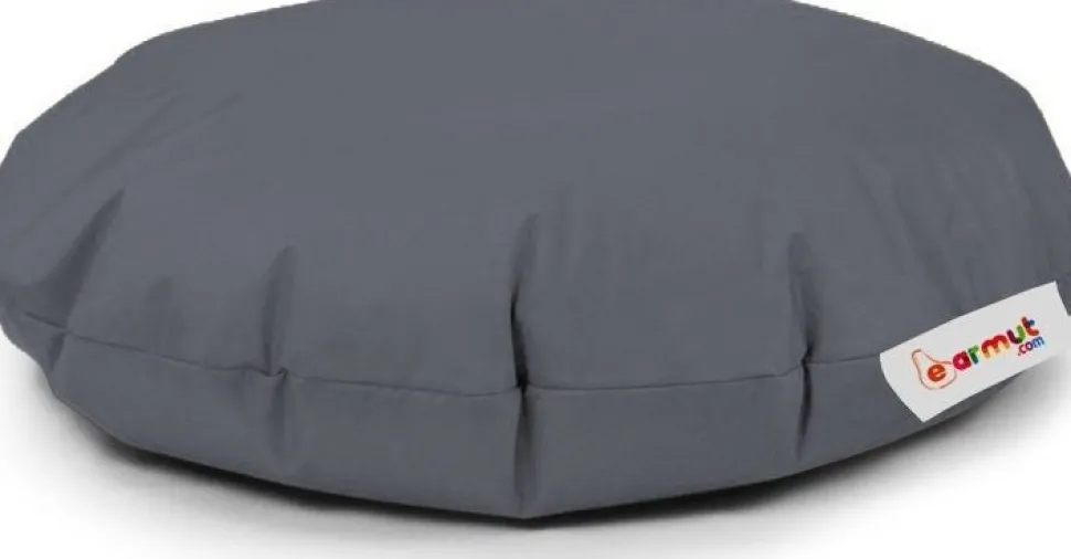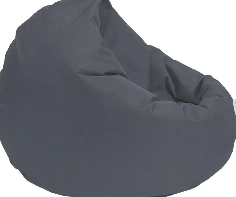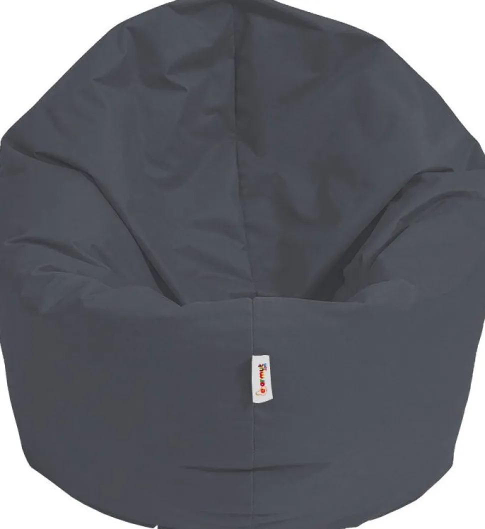 Sittsäck med klädsel av polyester och stoppning av frigolit.