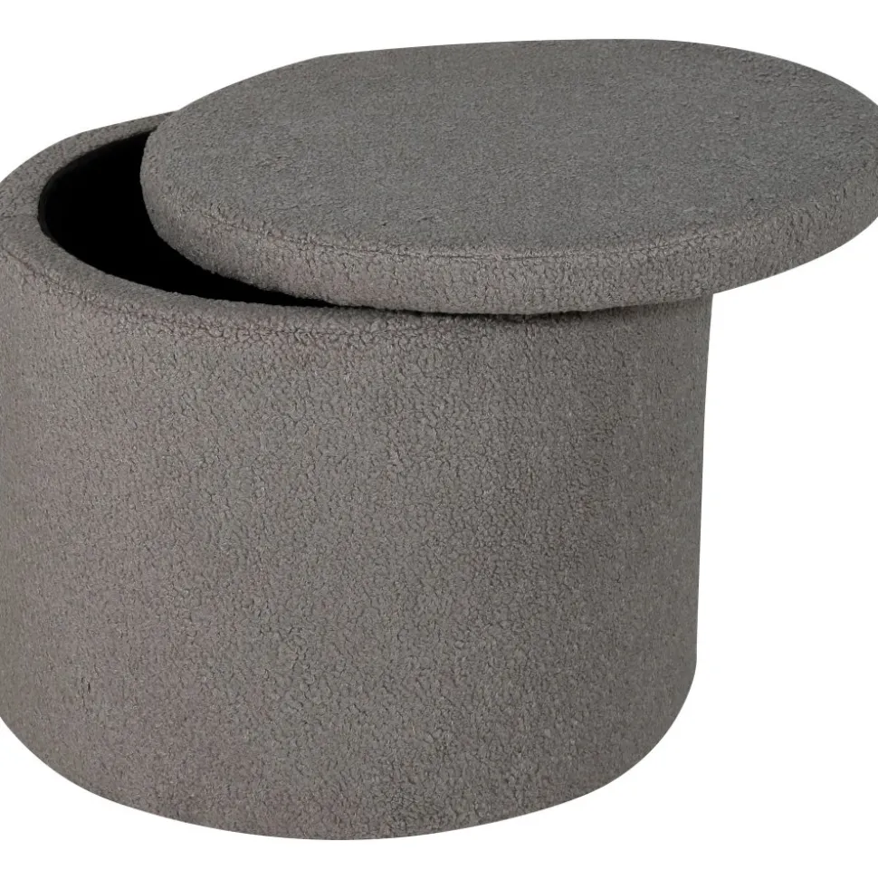Sittpuff av trä och stål, klädd med polyestertyg.