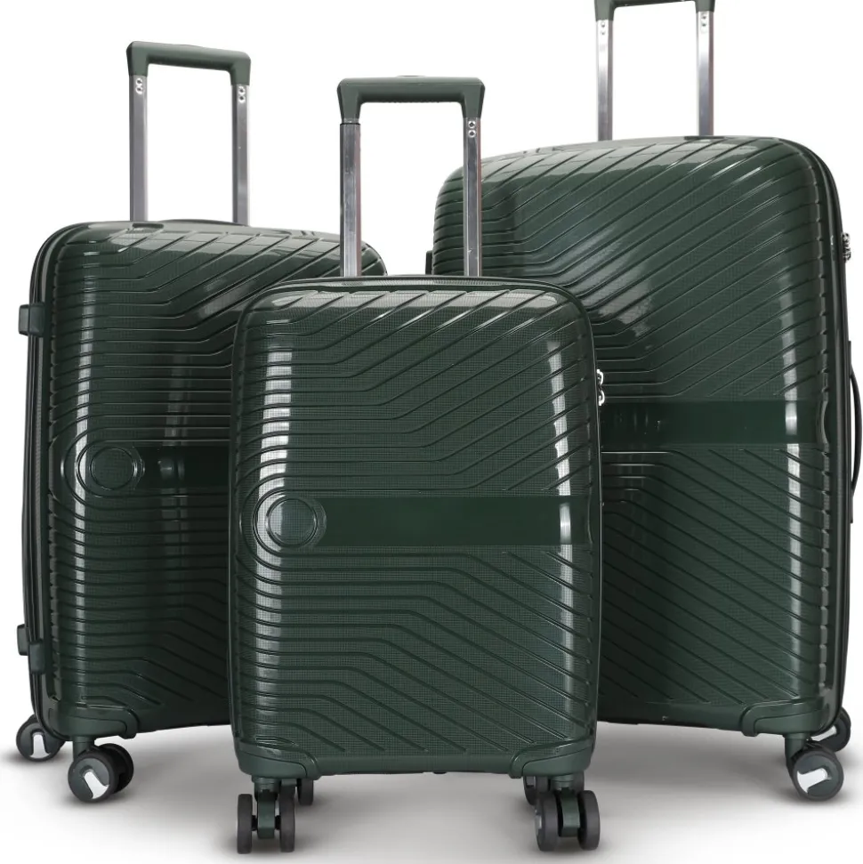 Set med 3 st i storlekarna small, medium och large. Väska i hårdplast med teleskophandtag av aluminium och plast. Alla väskorna har inbyggt lås. Låset är ett tresiffrigt kodlås.