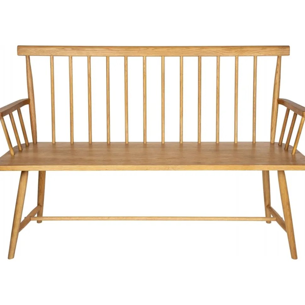 Träsoffan är av massiv oljad ek. Den mjukt formade ryggen ger en bekväm sittning tillsammans med den breda sitsen och armstöden på vardera sida. Här är det enkelt att matcha med stolsdynor i vilken färg som tilltalar just dig. Vi har ett stort utbud av olika stolsdynor för extra komfort. Exempelvis passar det utmärkt att piffa till det med 3 st runda fårskinnsdynor i grått och få en varm och ombonad känsla. Kombinera gärna soffan med pinnstolen Karl i ditt kök, eller placera soffan enskilt i din hall.