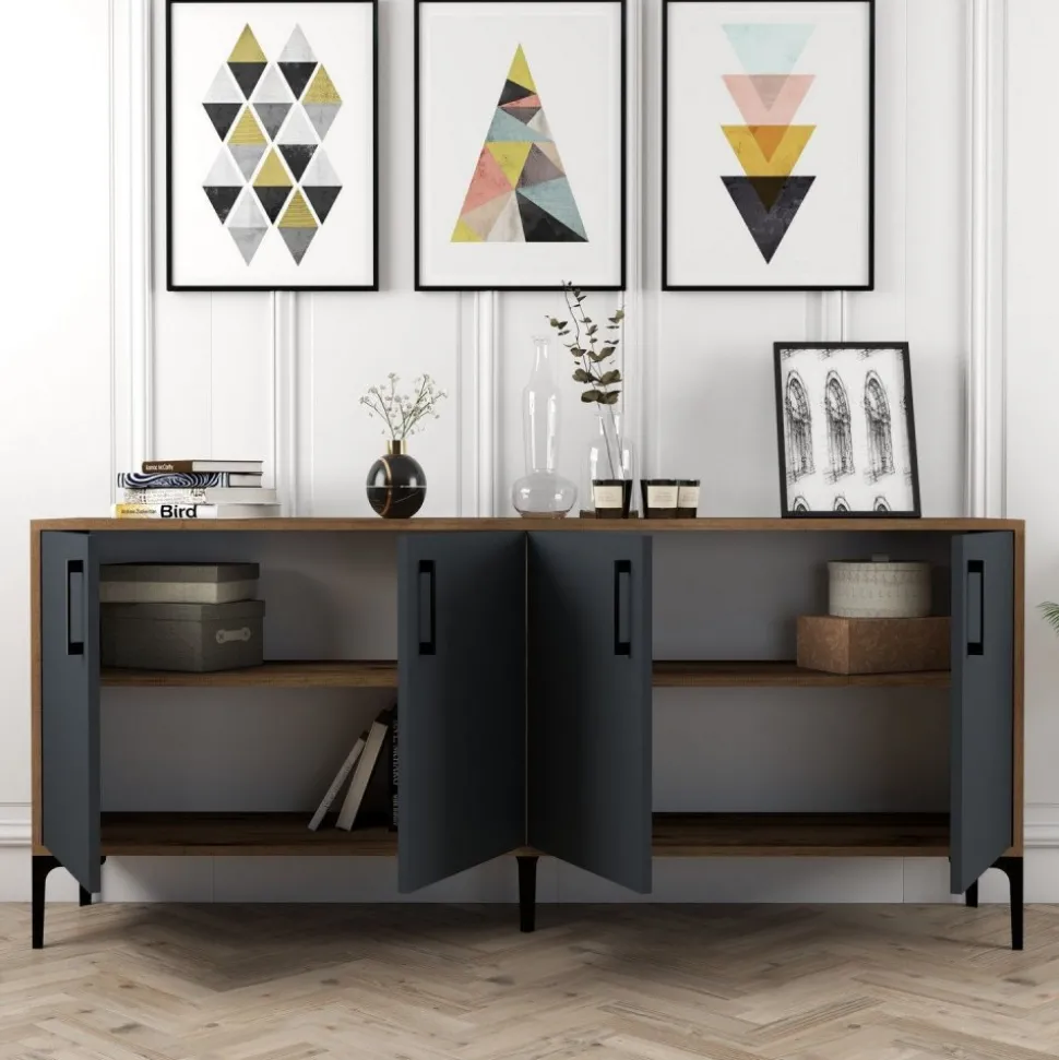 Kiev skänk 180 cm – Valnöt/antracit: