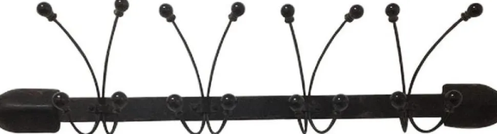 Praktisk kroklist i metall med 4 svarta krokar att hänga kläder på.