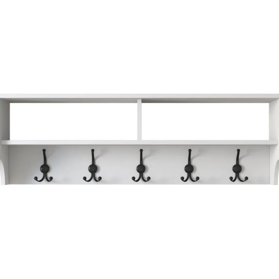En funktionell som kombinerar smart förvaring med stilren design. Tillverkad av melaminbelagd spånskiva för en hållbar och lättskött yta. Den vita färgen gör att den passar i de flesta hem och hallmiljöer.