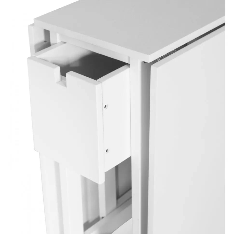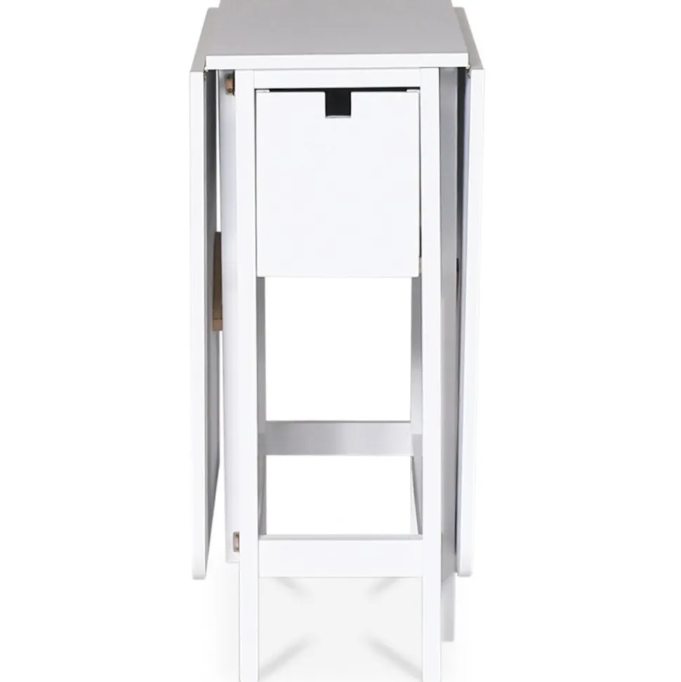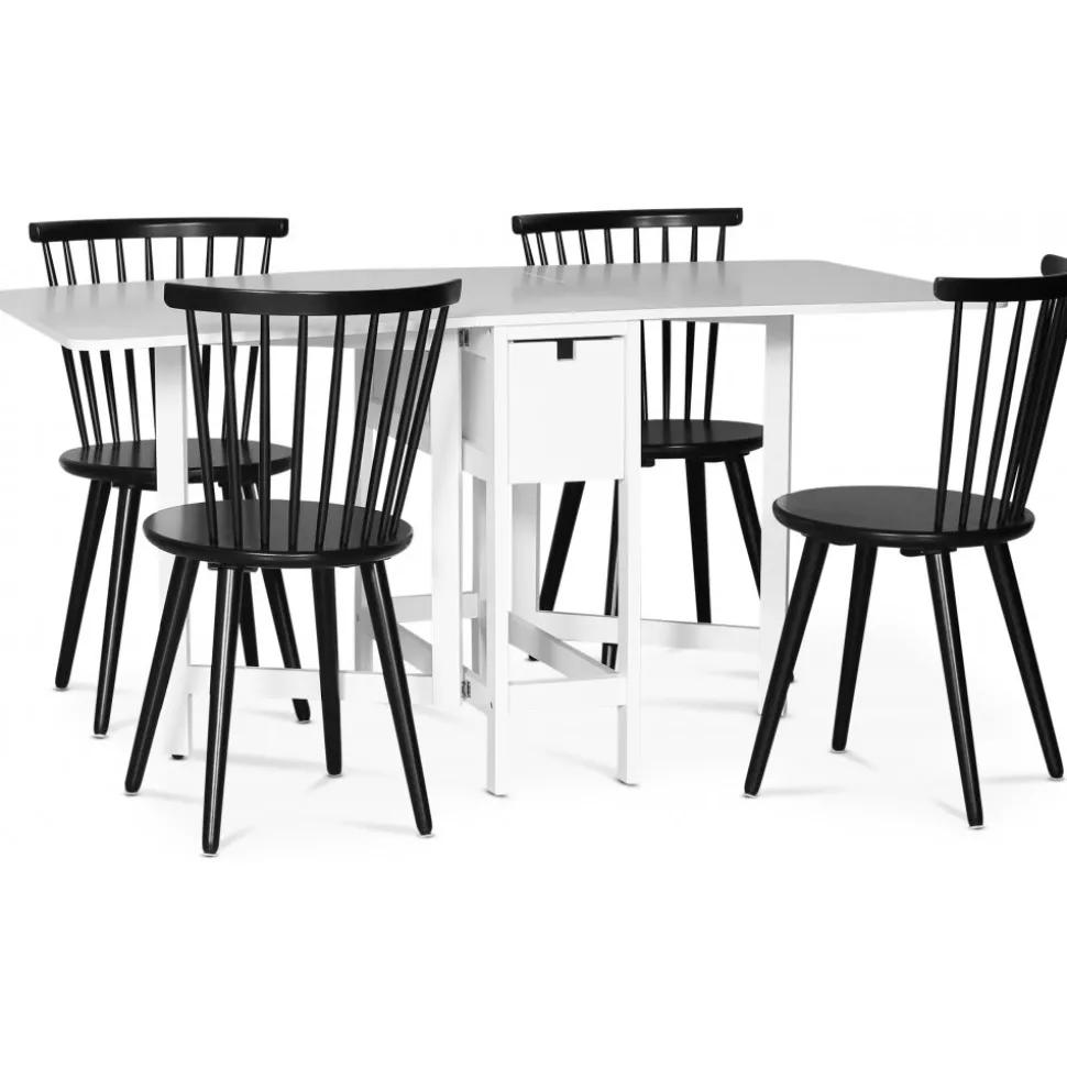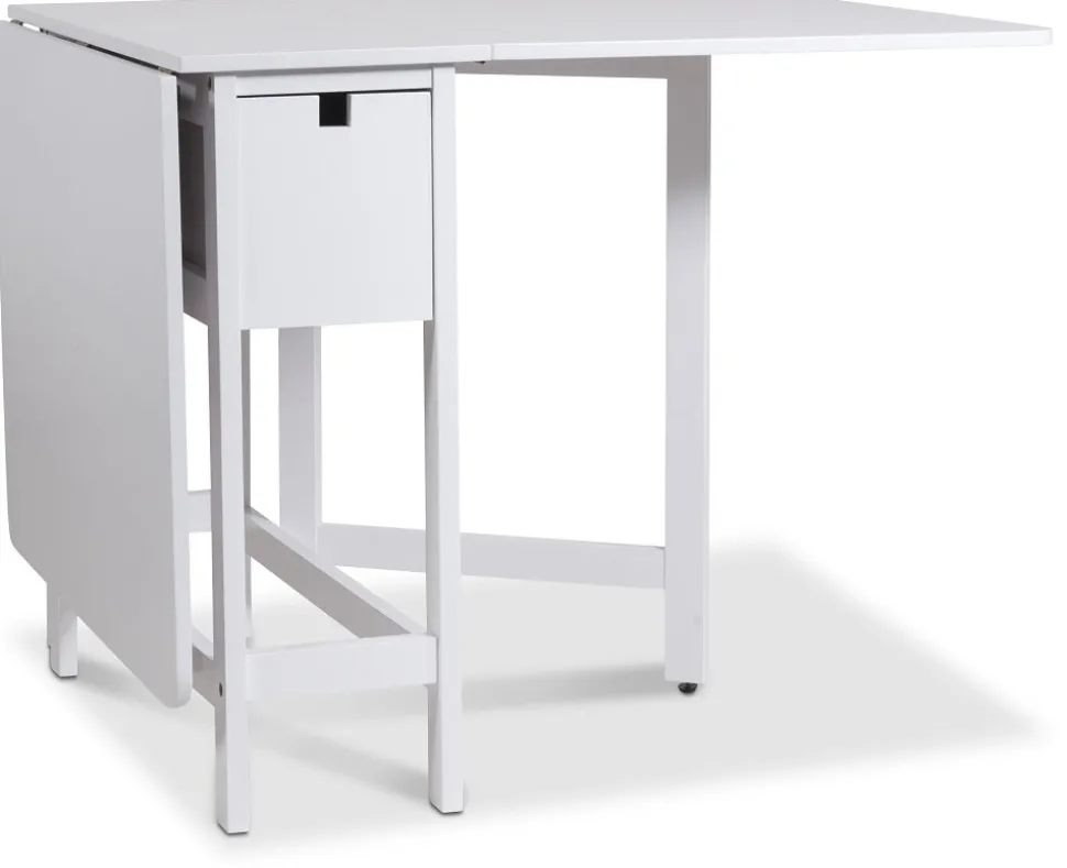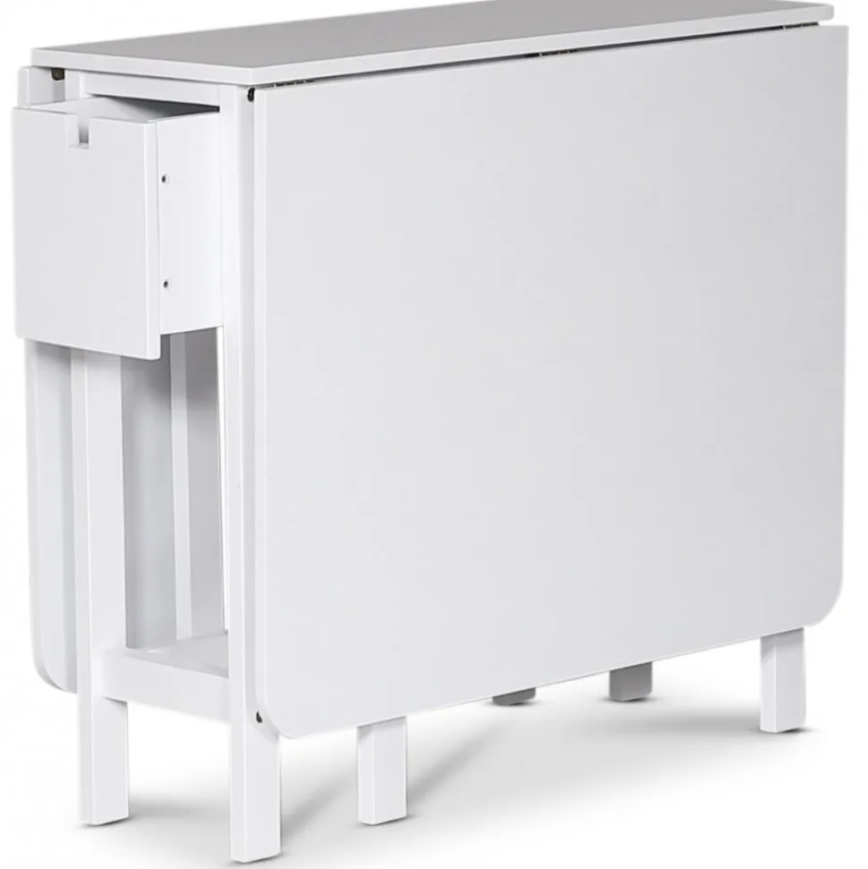Sandhamn slagbord / Klaffbord är en flexibel möbel för det lilla utrymmet. Matbordet tar nästan ingen plats alls i helt nedfällt läge. I fullt uppfällt läge rymmer bordet ett sällskap på 6 st personer runt om. Praktisk förvaring med en låda på varje långsida av bordet.