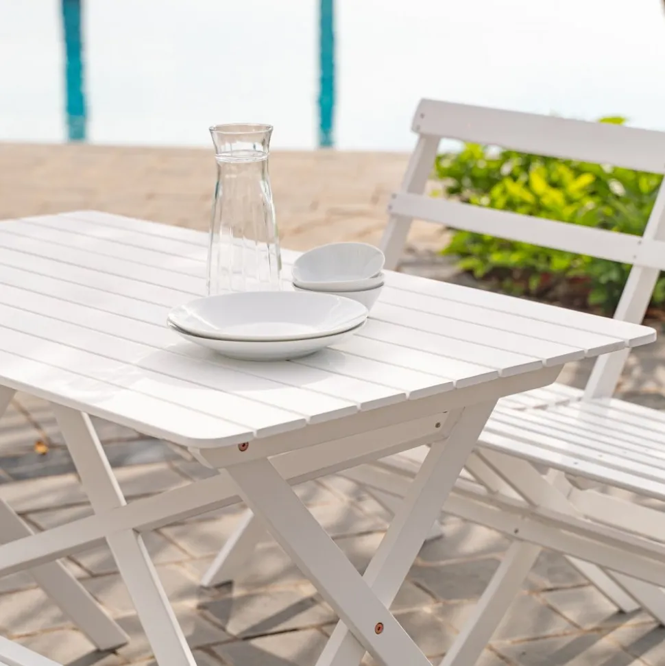 Soffa i klassikt utförande i vitlaserat trä. Soffan kan antingen användas som en solitär möbel eller tillsammans med matbord och stol i samma serie.