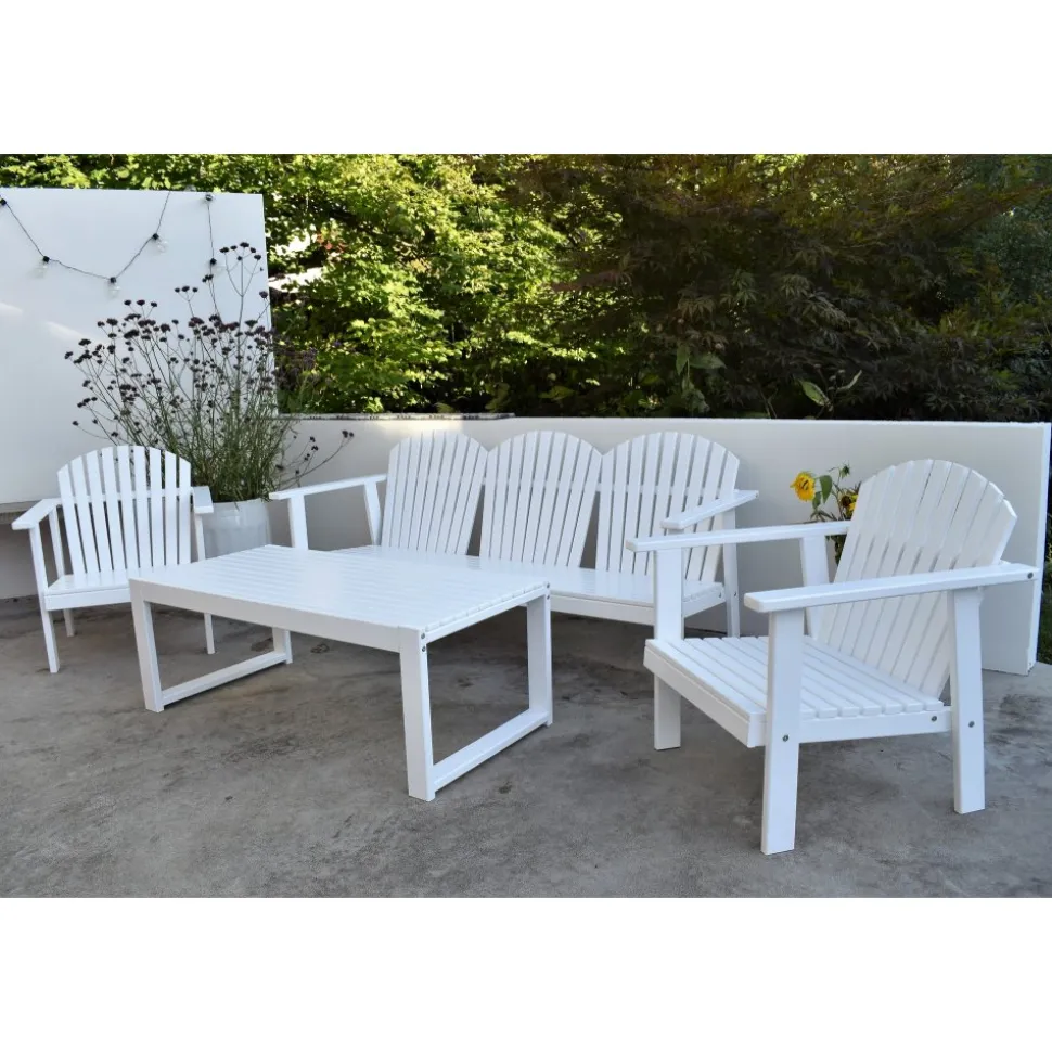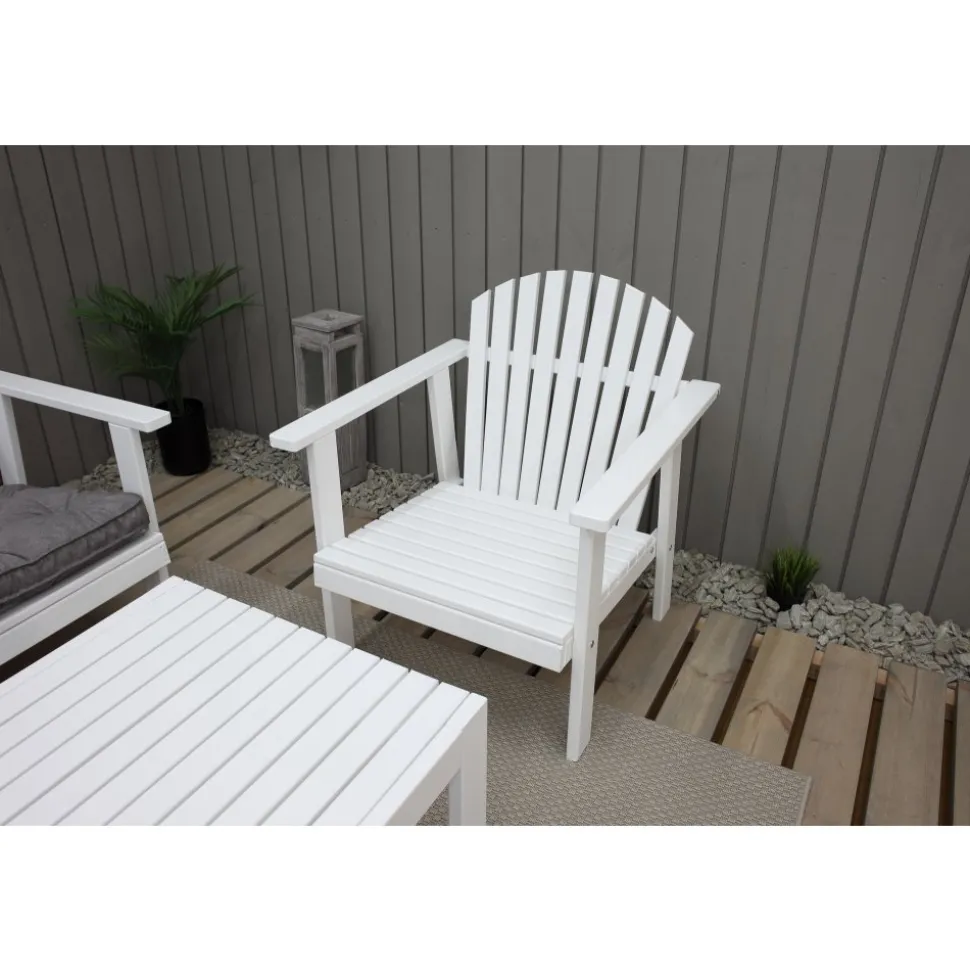 Utemöbelgrupp i klassiskt stil från Skånska Möbelhuset. Setet består av sofa, bord samt två fåtöljer. Fixa till en trevlig uteplats med denna fräscha möbelgrupp.