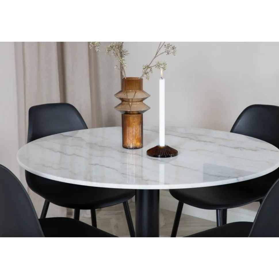 Matbord av marmor och metall.