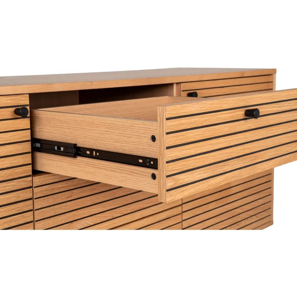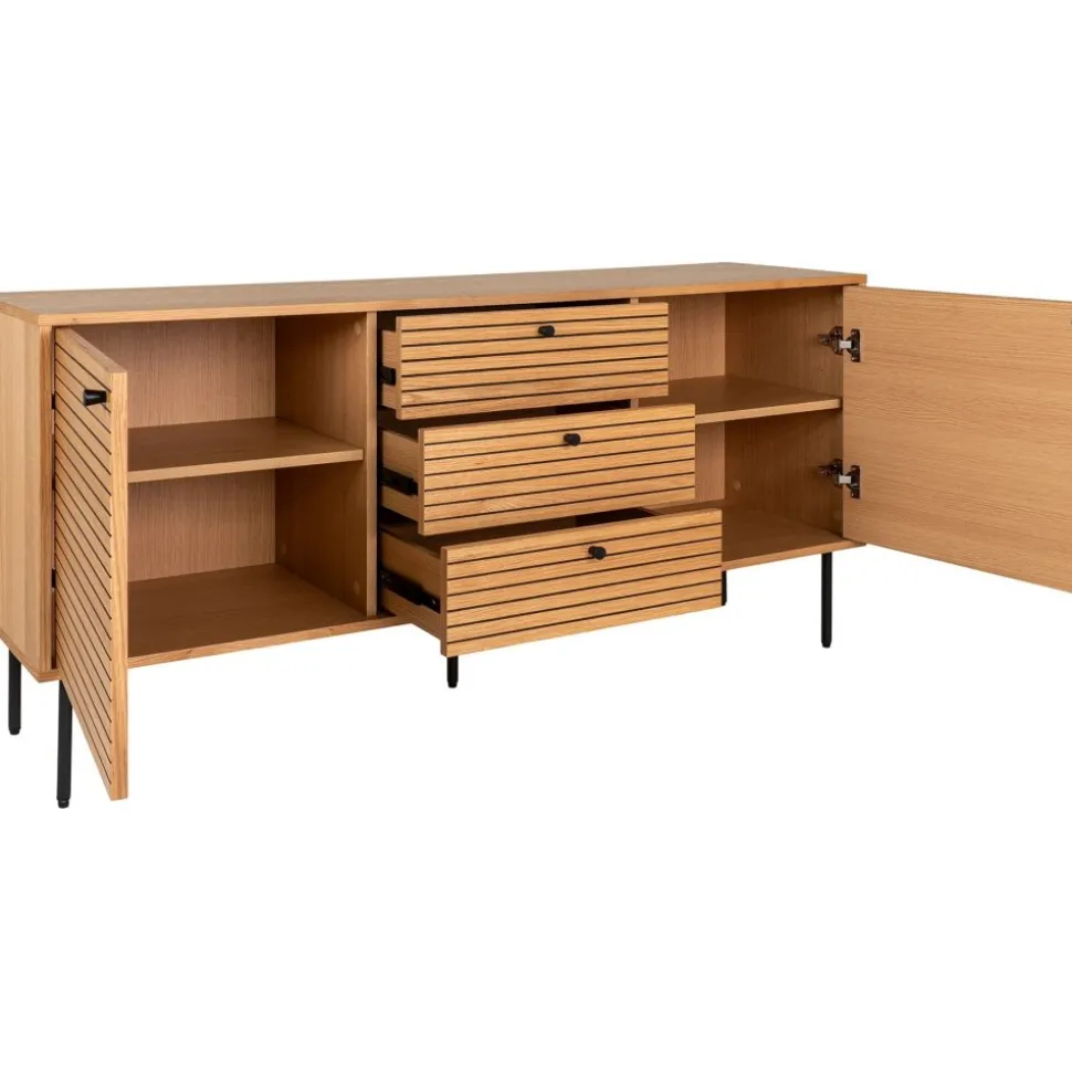 Skänk av MDF, ekfáner och stål. Levereras omonterad.