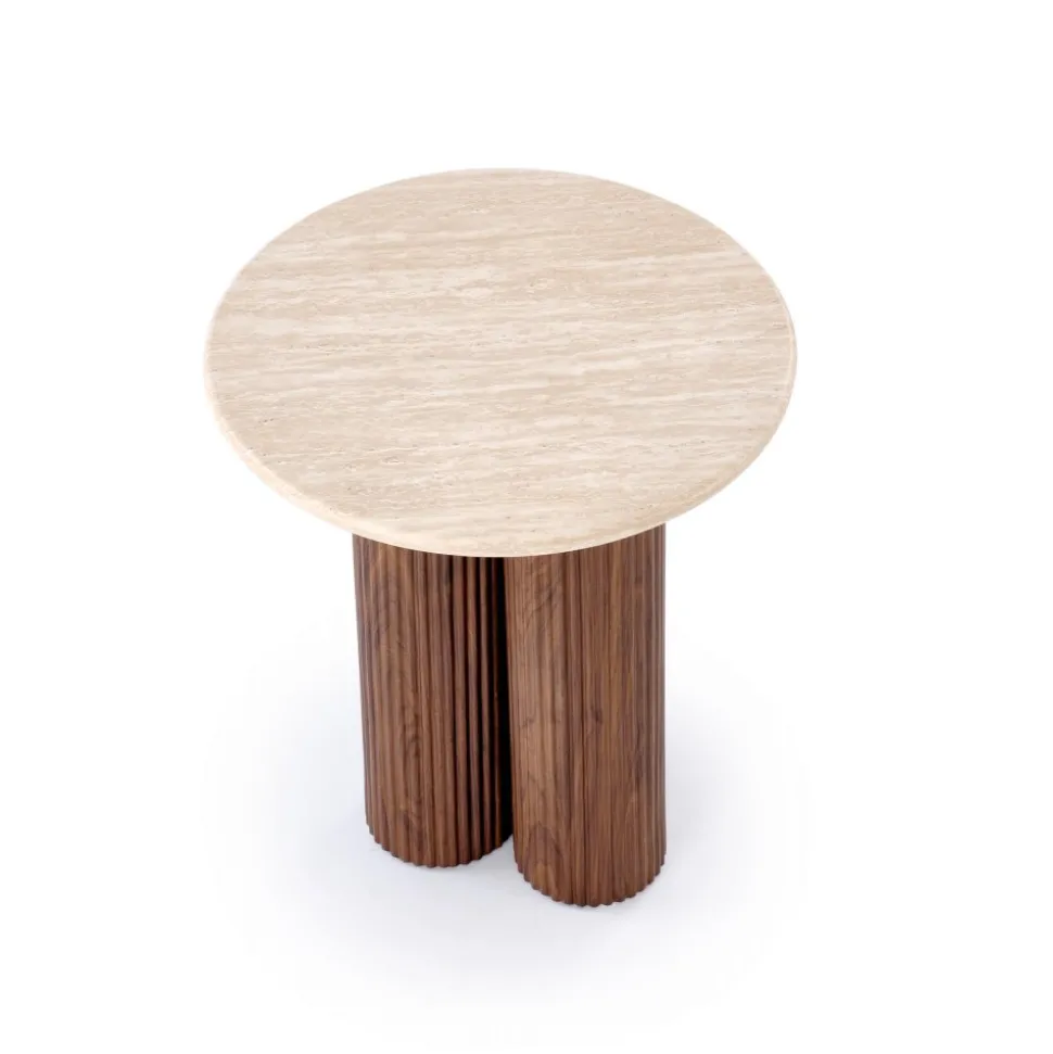 Lampbord i modern design med Mocca färgat underrede och toppskiva i Travertin-melamin.