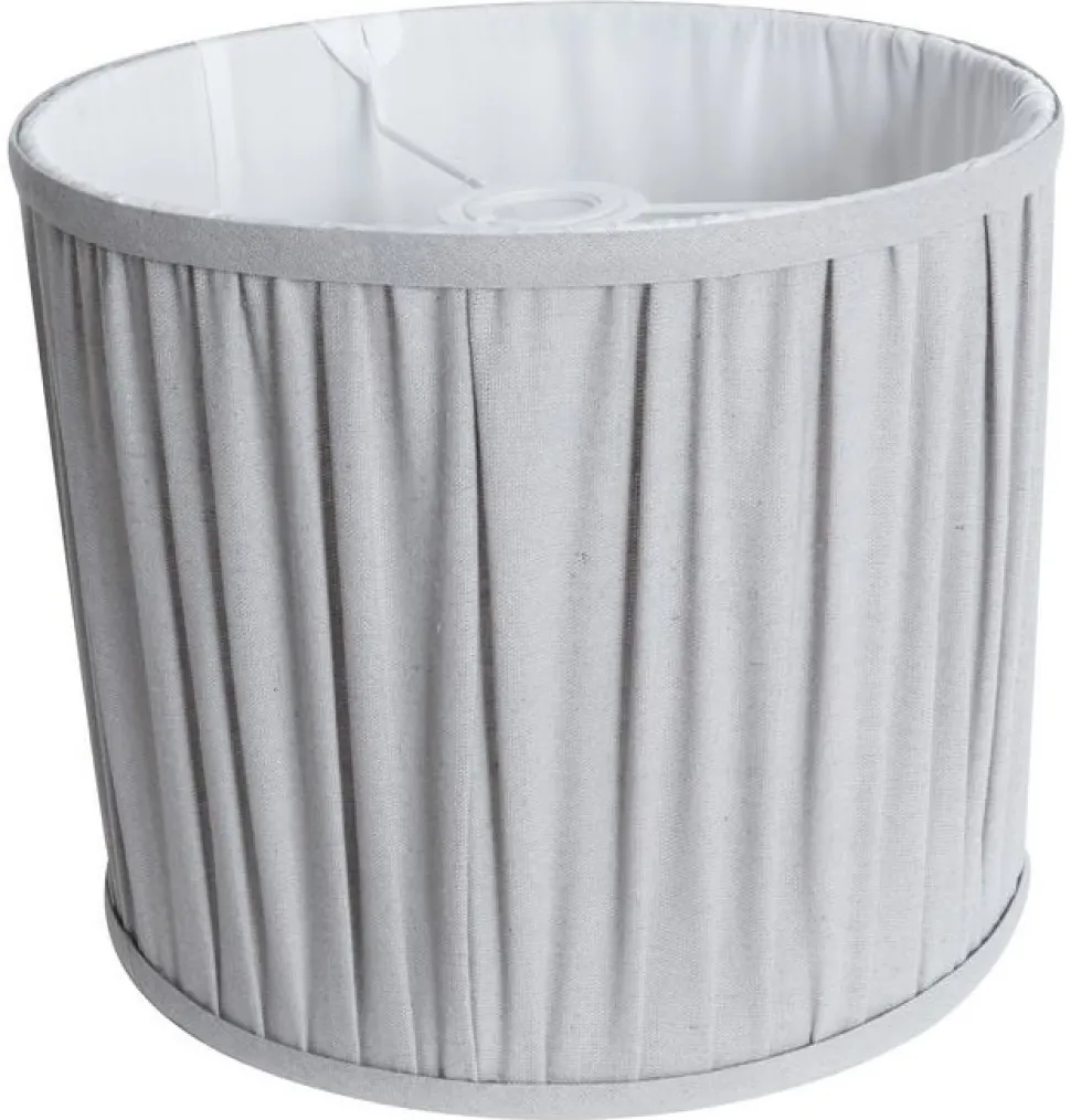 Veckad i grått linnetyg. Passar både E14 och E27 fattning.