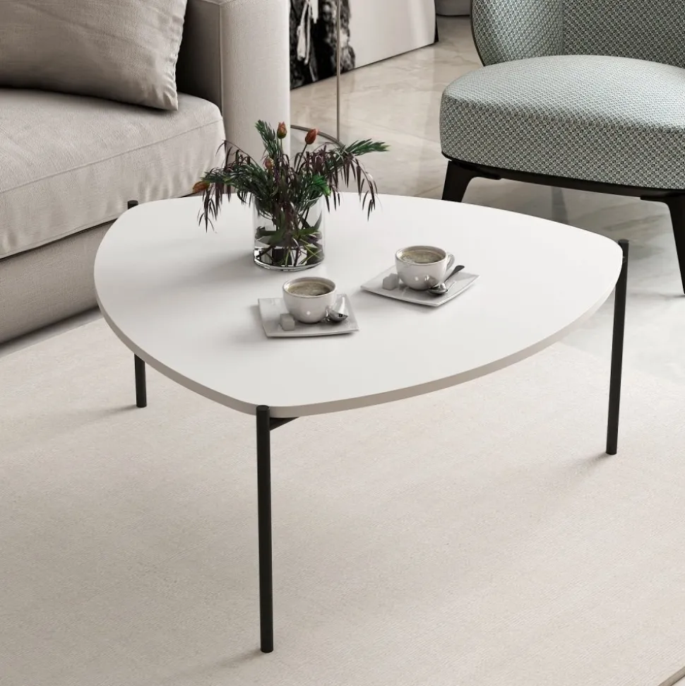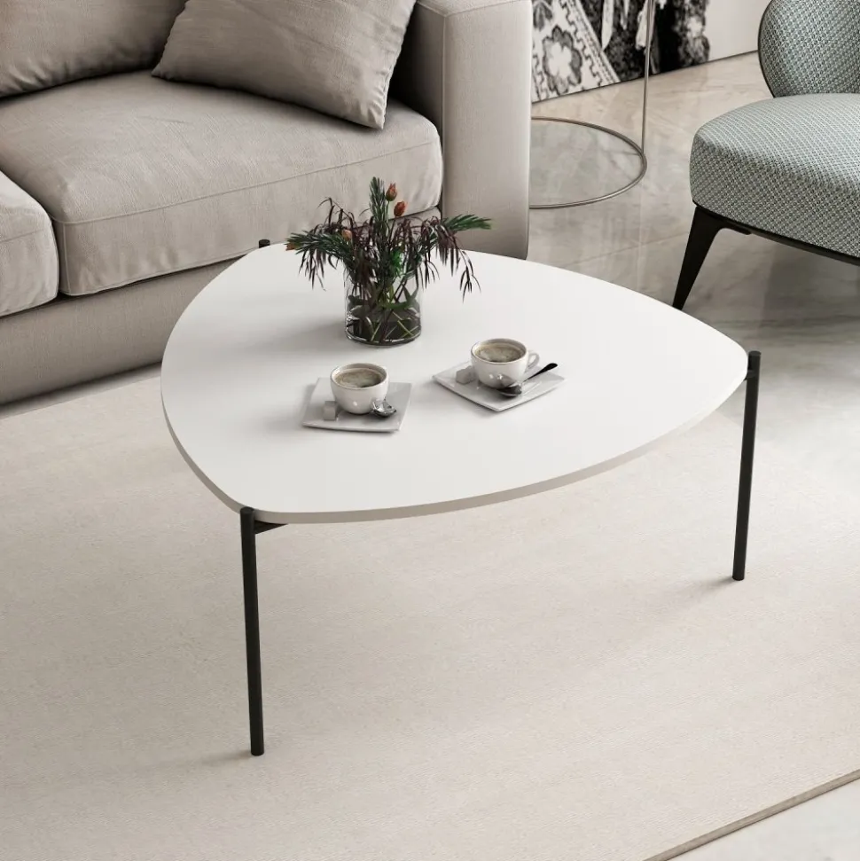 Soffbord av trä med underrede av metall.