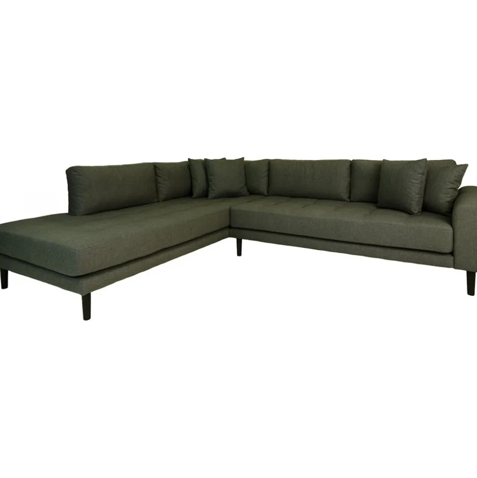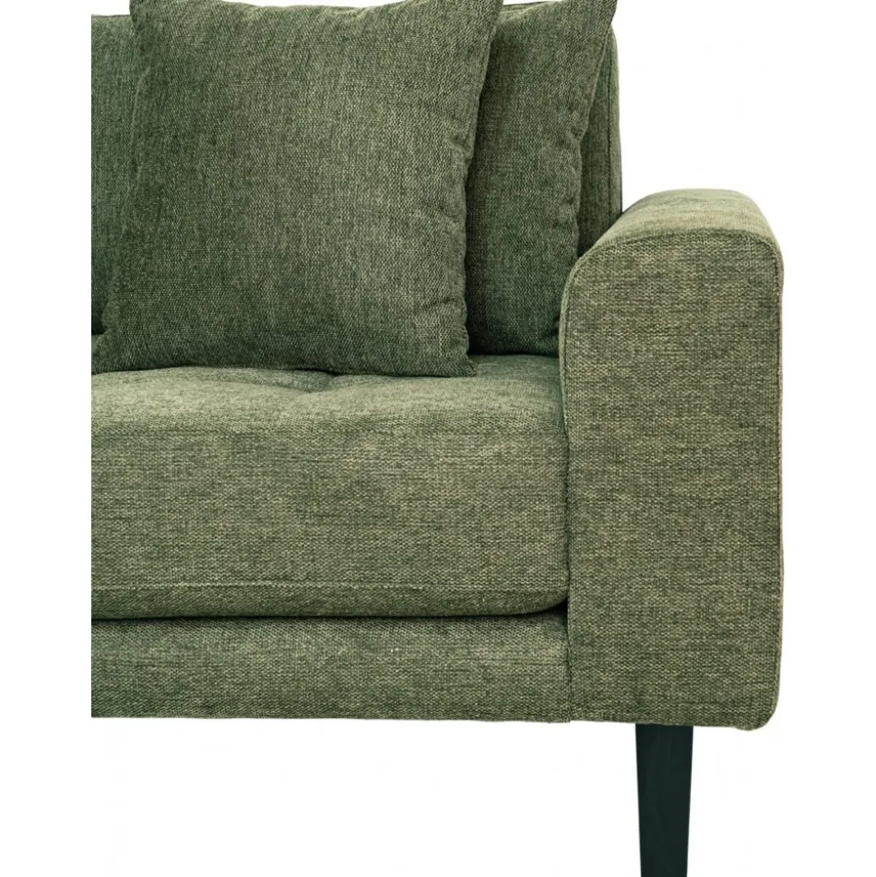 Soffa av ek och furu med klädsel av polyester och stoppning av polyuretan. 4 st prydnadskuddar ingår. Viss montering krävs.