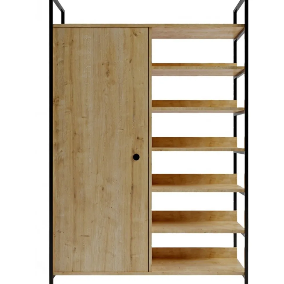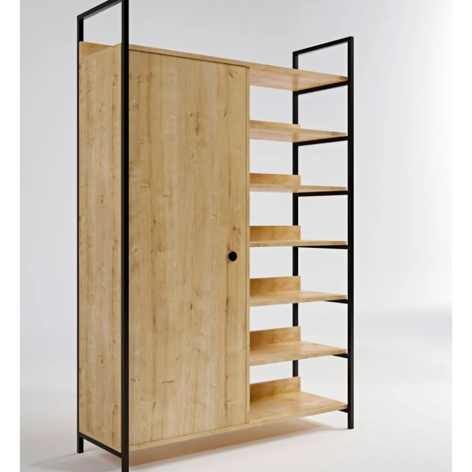 Garderob av trä och metall.